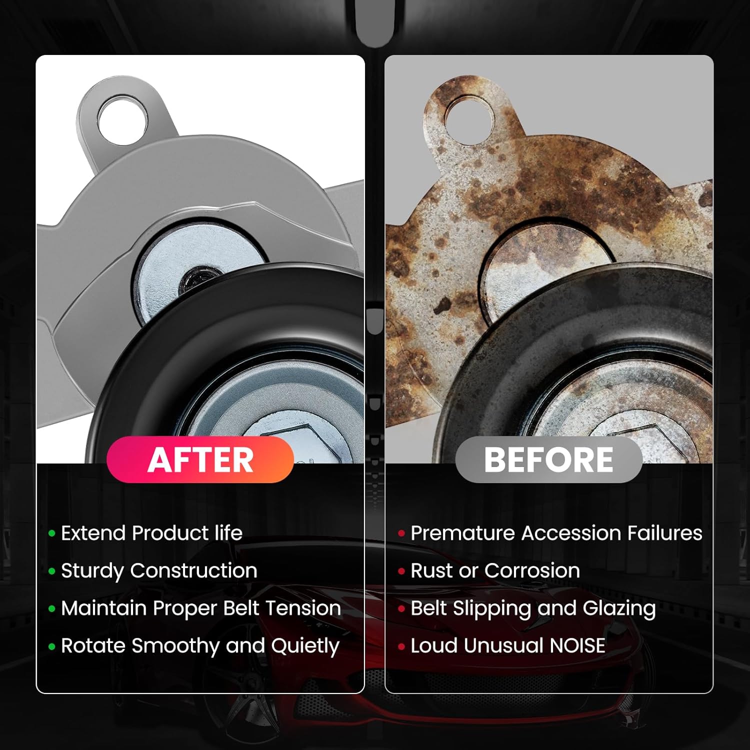 【STABILITY AND RELIABILITY】---The drive belt tensioner is to adjust the tightness of the belt to maintain the stability and reliability of your car's transmission system more stable and reliable.BDFHYK drive belt tensioner can offer you a professional user experience and make your car like new. You may choose it with confidence.
