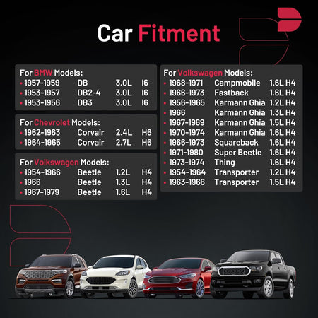 【Compatibility Information】:Spark Plug 3922 Compatible with Aston Martin 1957-1959 DB, 1953-1957 DB2-4, 1953-1956 DB3; Compatible with Chevy 1962-1965 Corvair; Compatible with Volkswagen 1954-1979 Beetle, 1968-1971 Campmobile, 1966-1973 Fastback, 1956-1974 Karmann Ghia, 1966-1973 Squareback, 1971-1980 Super Beetle, 1973-1974 Thing, 1954-1966 Transporter.Please see images or details page for complete Compatibility information