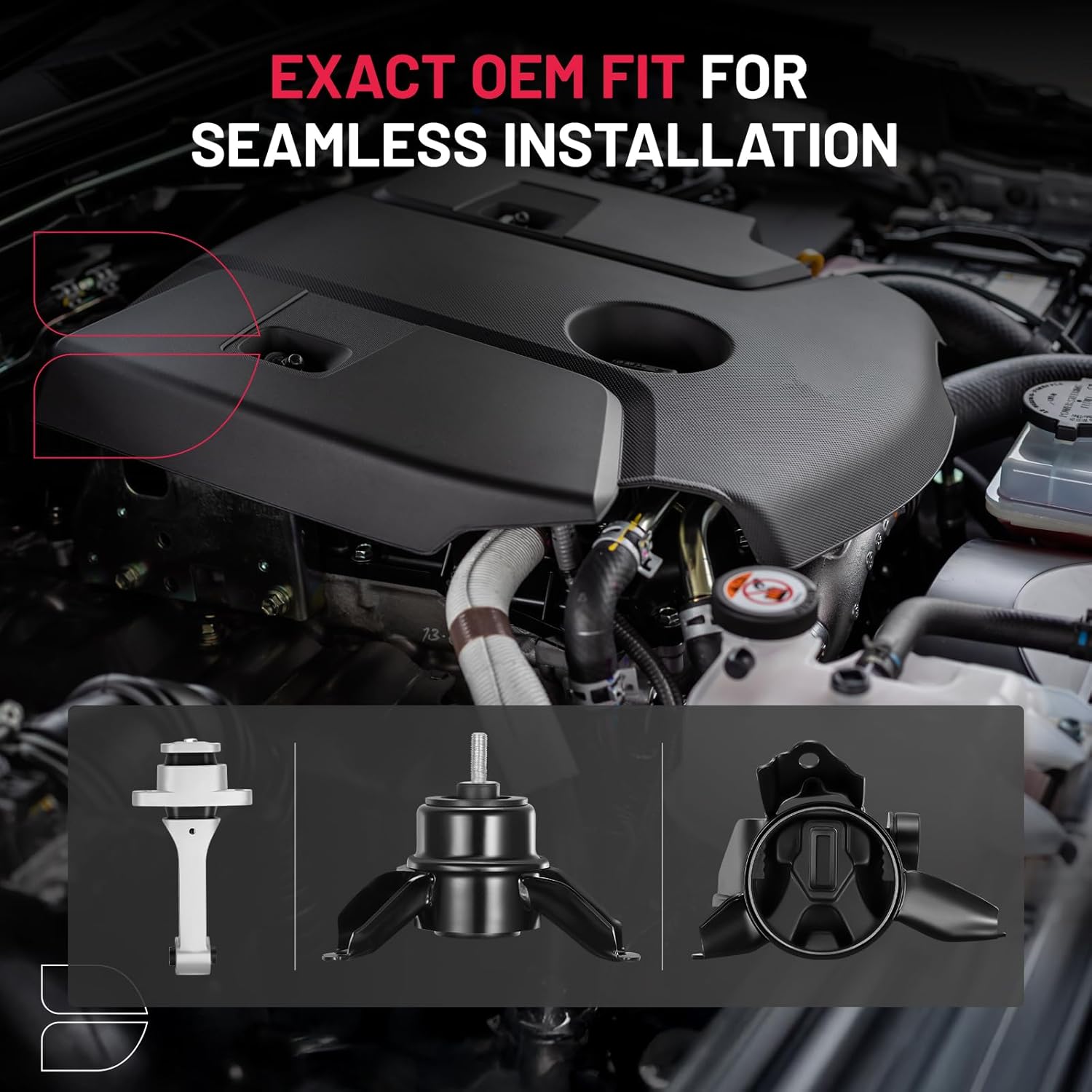 【Package Included】1x Front Motor Mount Part Number# A71048, 9905, EM-9905, 218102S050, 1x Front Lower Torque Strut Mount Part Number# A71021, 9760, EM-7105,219502S000,219502S100,219502S200, 1x Transmission Mount Part Number# A71009, 9779, EM-7056, 218302S000, 218303W050