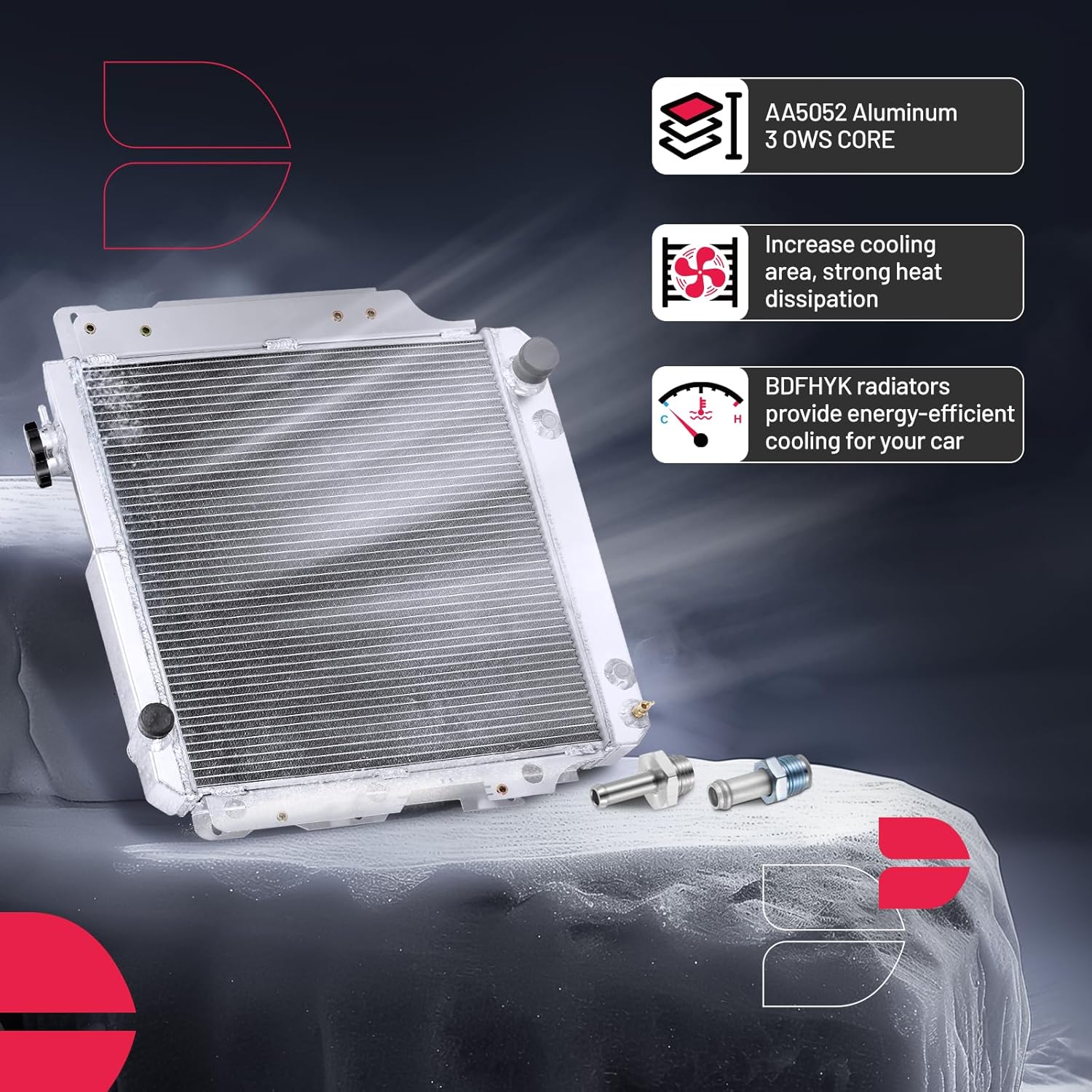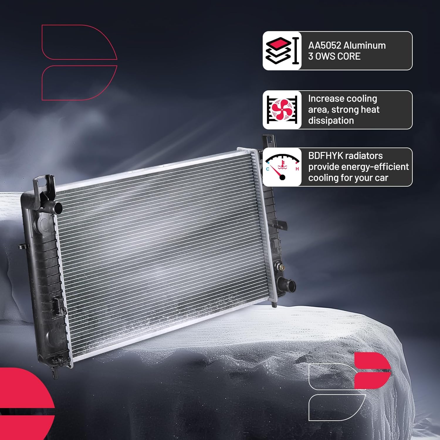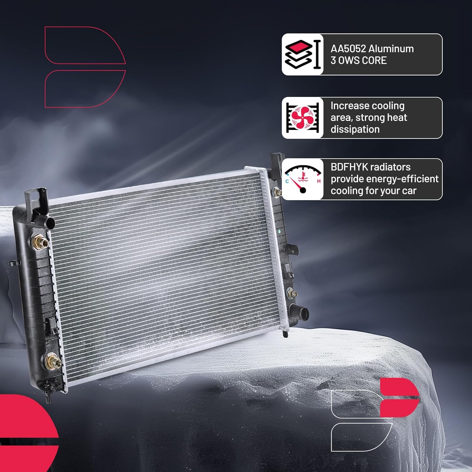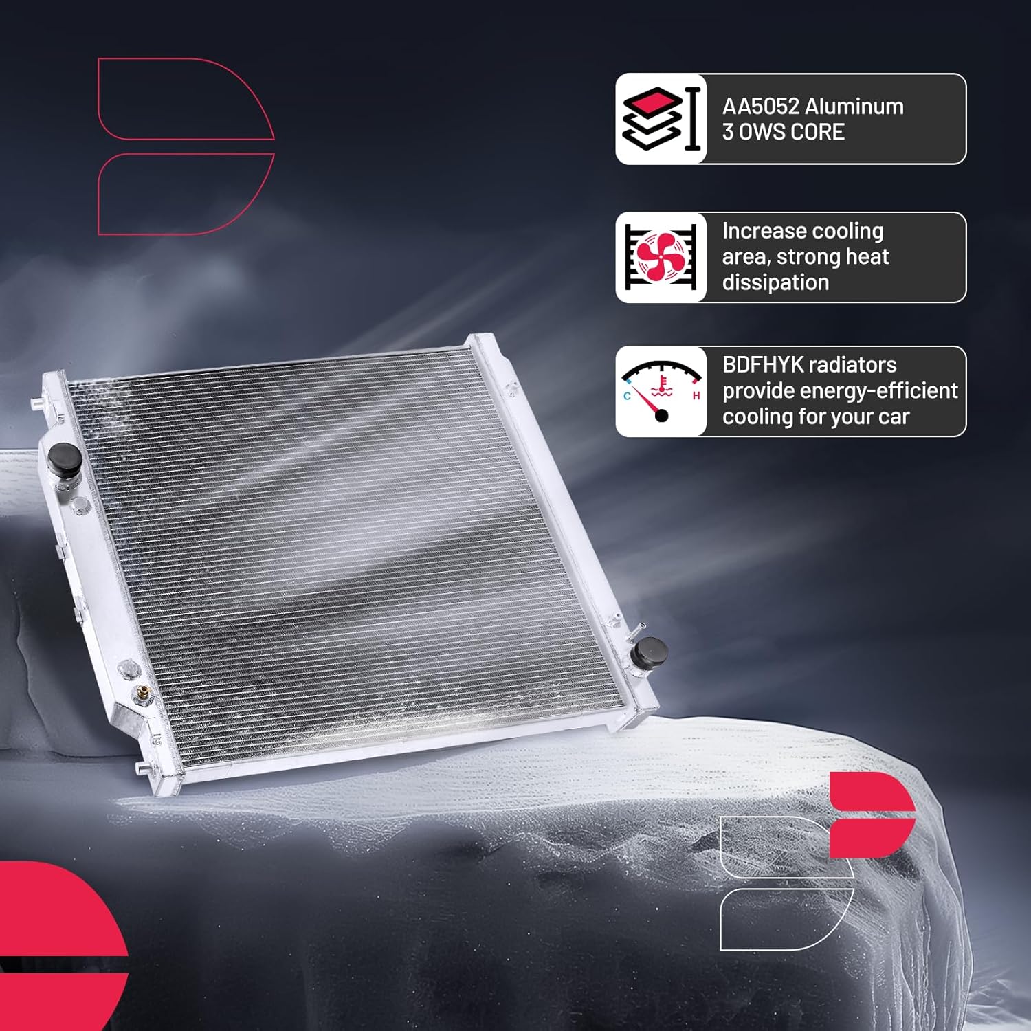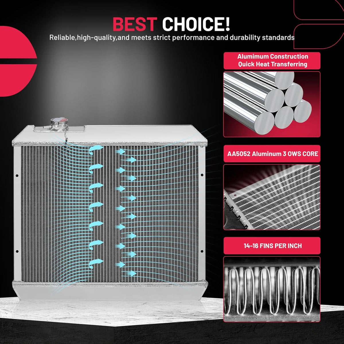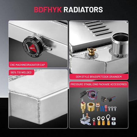 BDFHYK 3ROW-44MM RA-FM64-3 Aluminum Radiator Compatible with for Falcon 1960-1966, Mustang 1965-1966,Ranchero 1960-1965,Mercury Comet 1961-1965