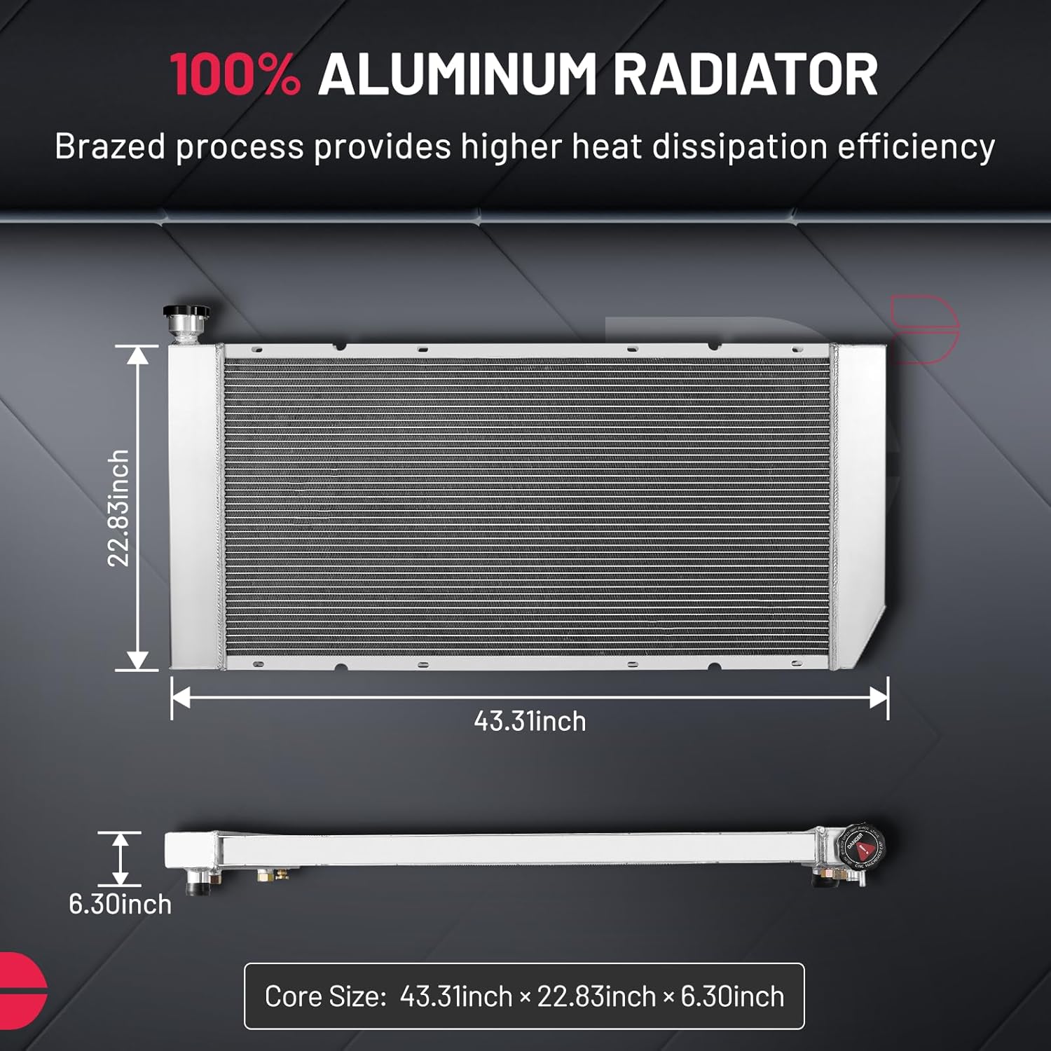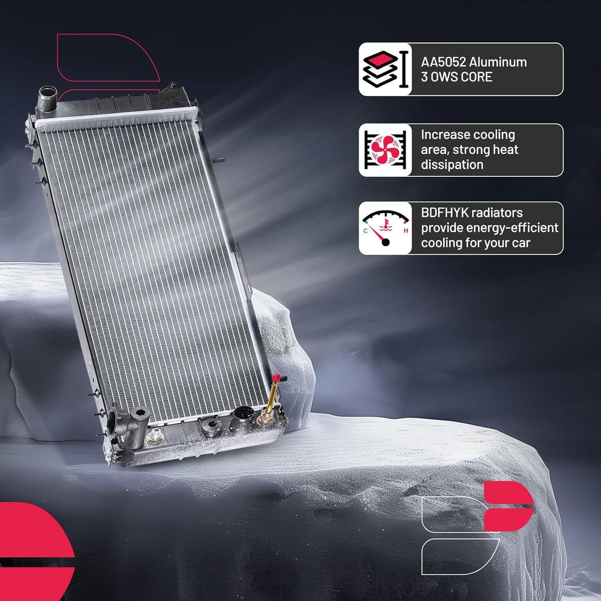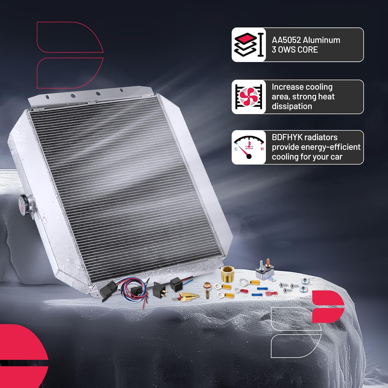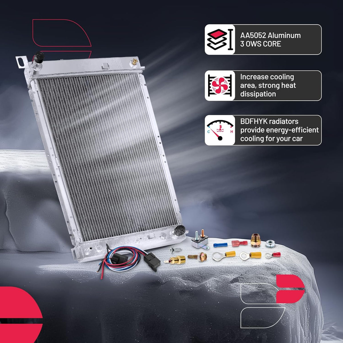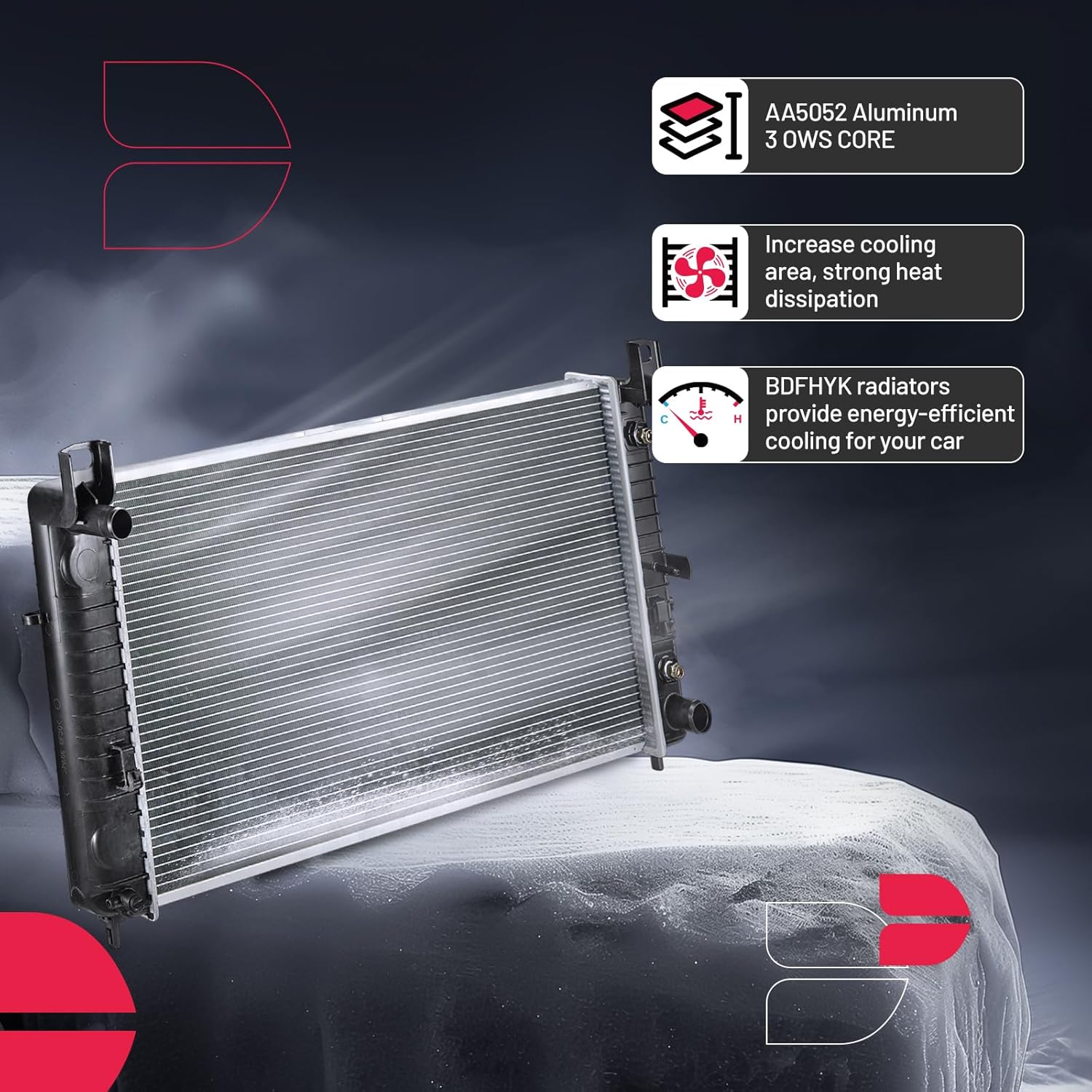 BDFHYK 3ROW-44MM RA-FM64-3 Aluminum Radiator Compatible with for Falcon 1960-1966, Mustang 1965-1966,Ranchero 1960-1965,Mercury Comet 1961-1965