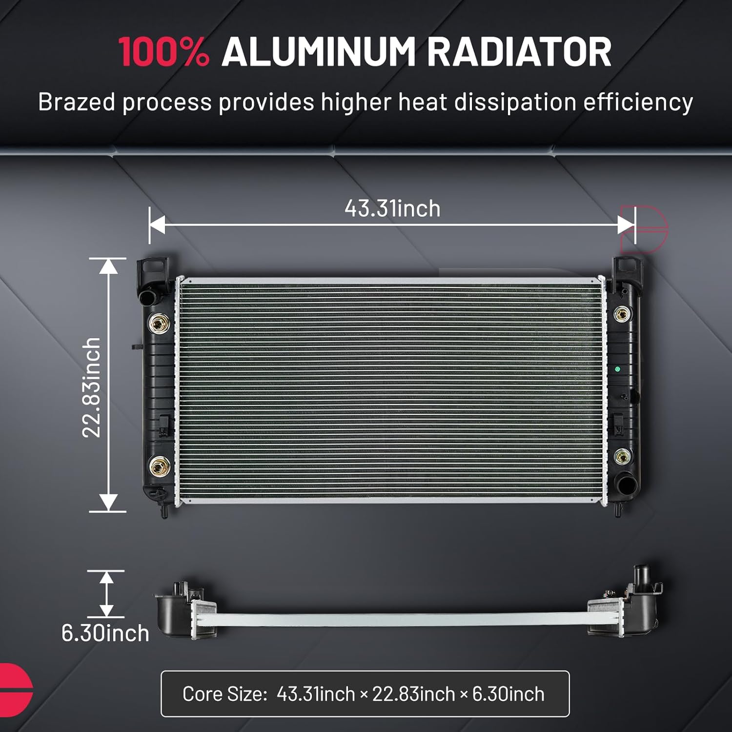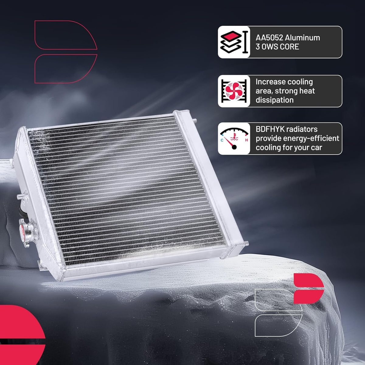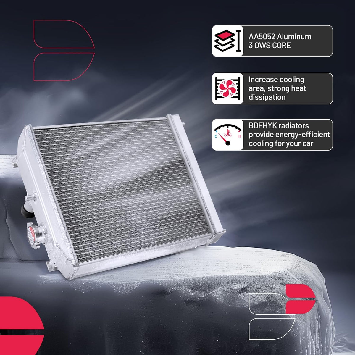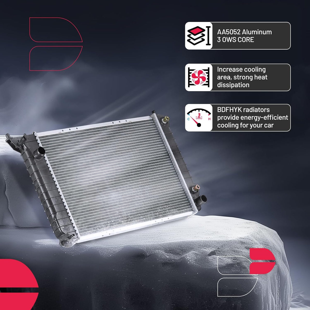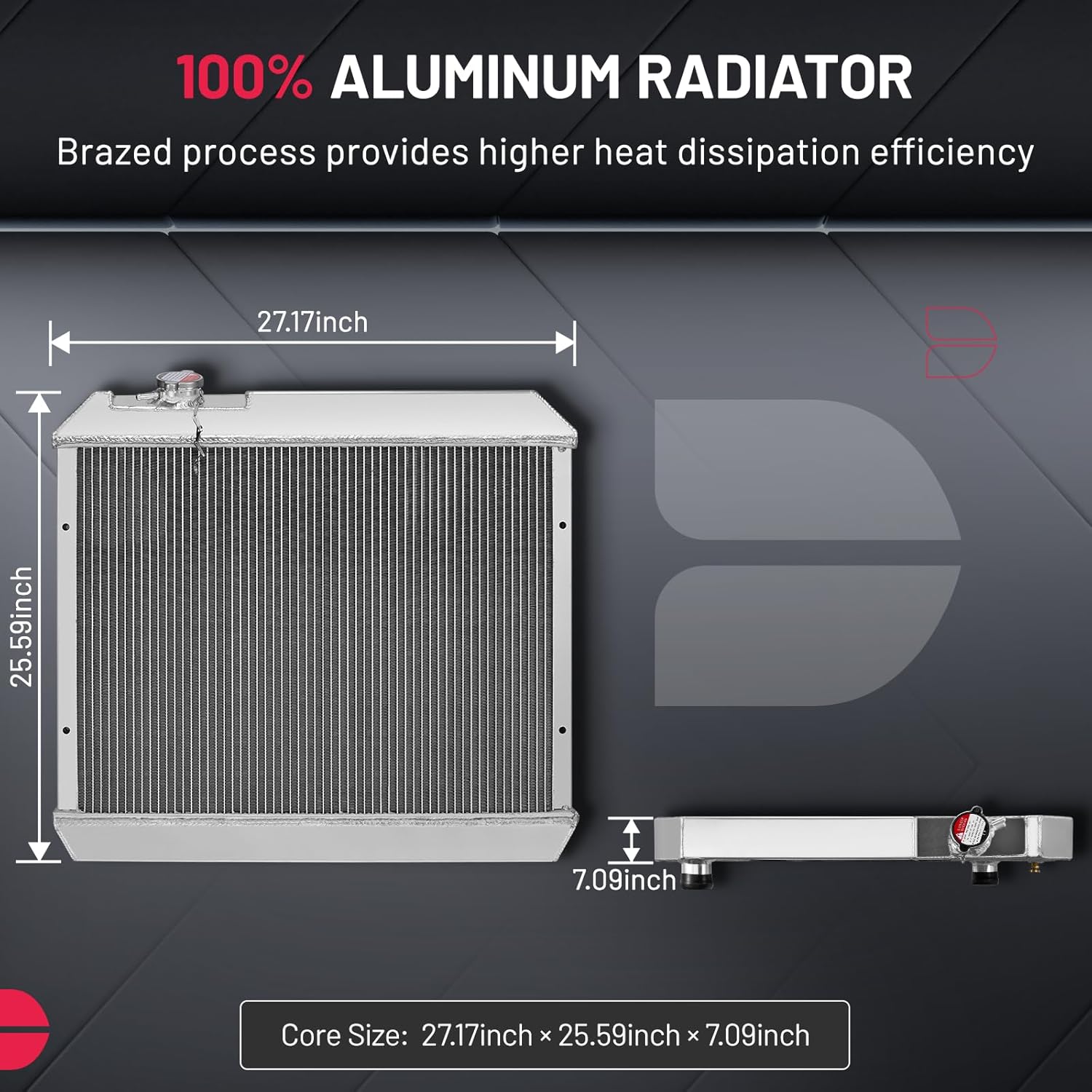 BDFHYK 3ROW-44MM RA-FM64-3 Aluminum Radiator Compatible with for Falcon 1960-1966, Mustang 1965-1966,Ranchero 1960-1965,Mercury Comet 1961-1965