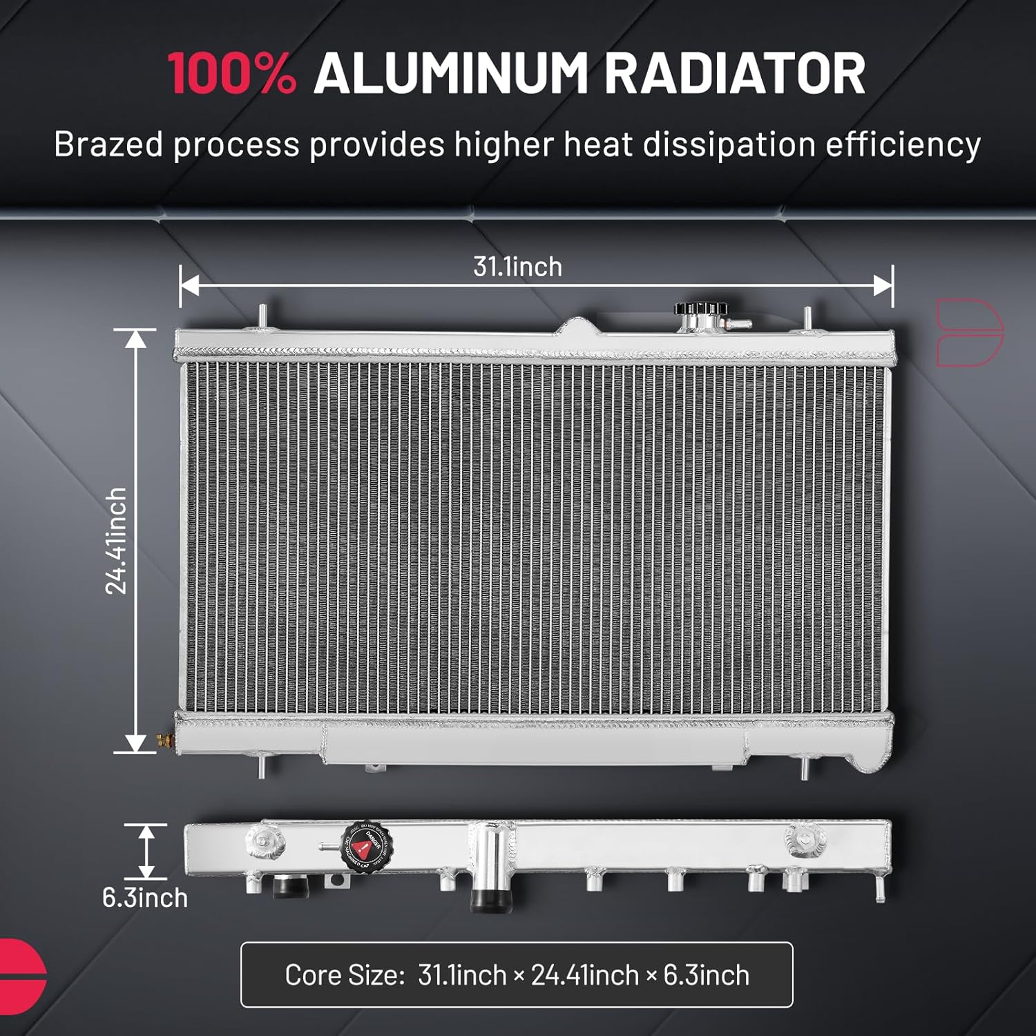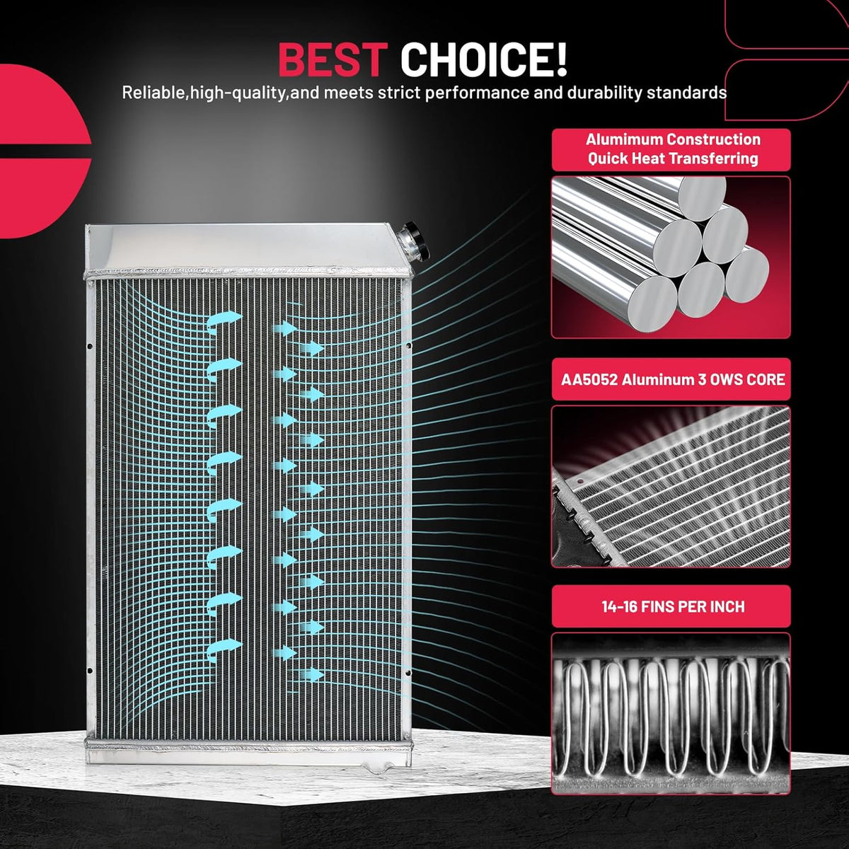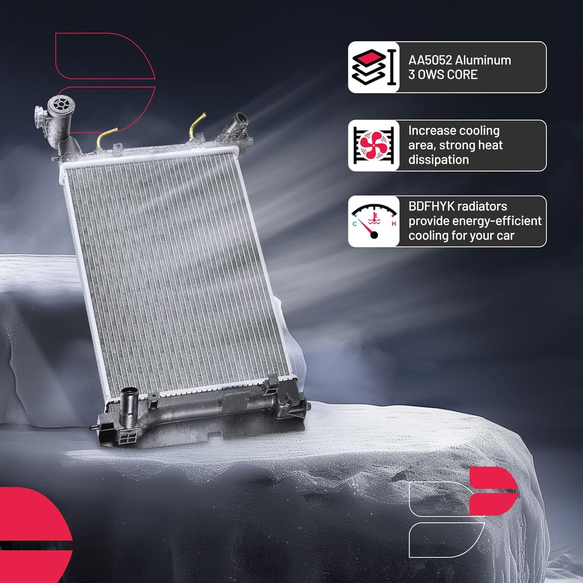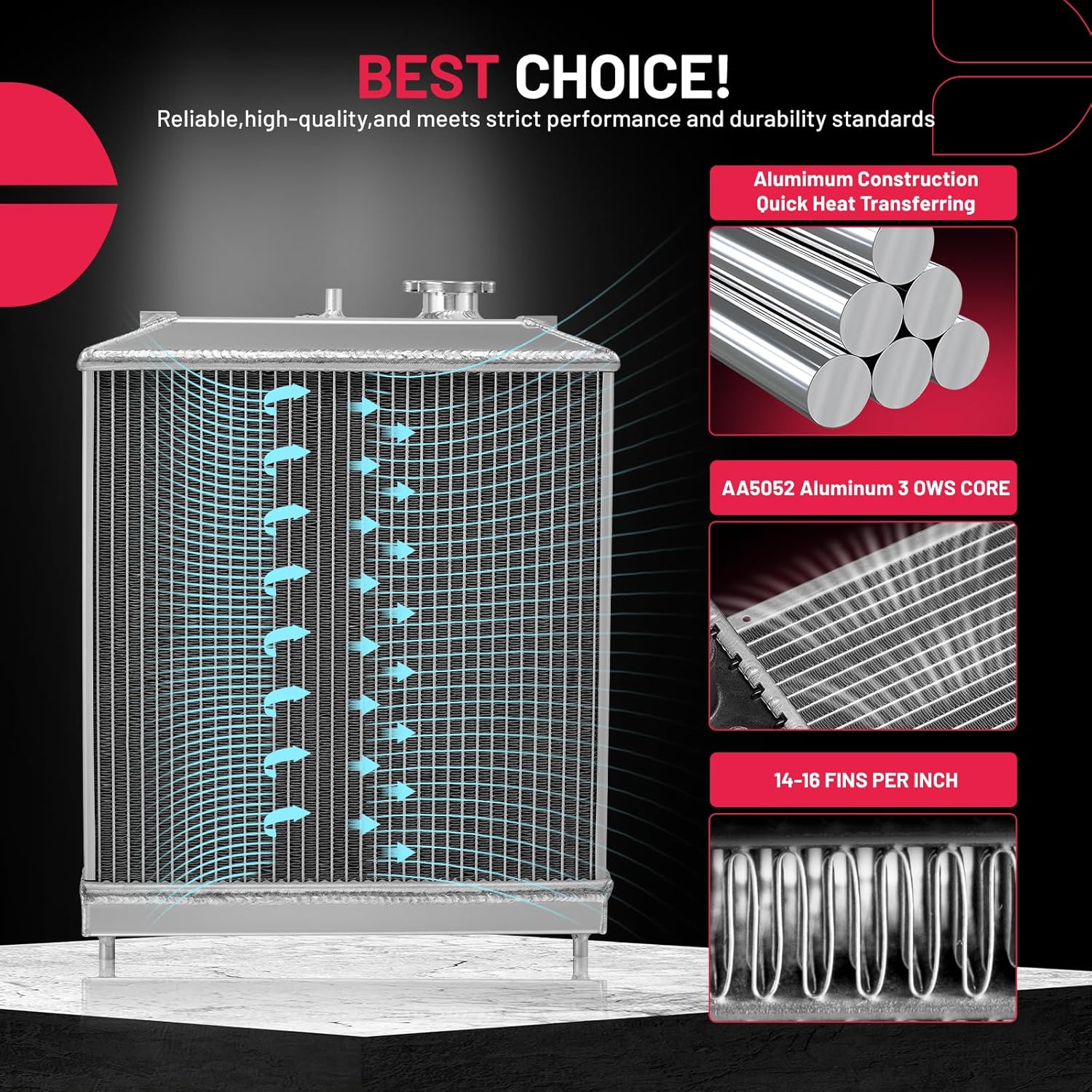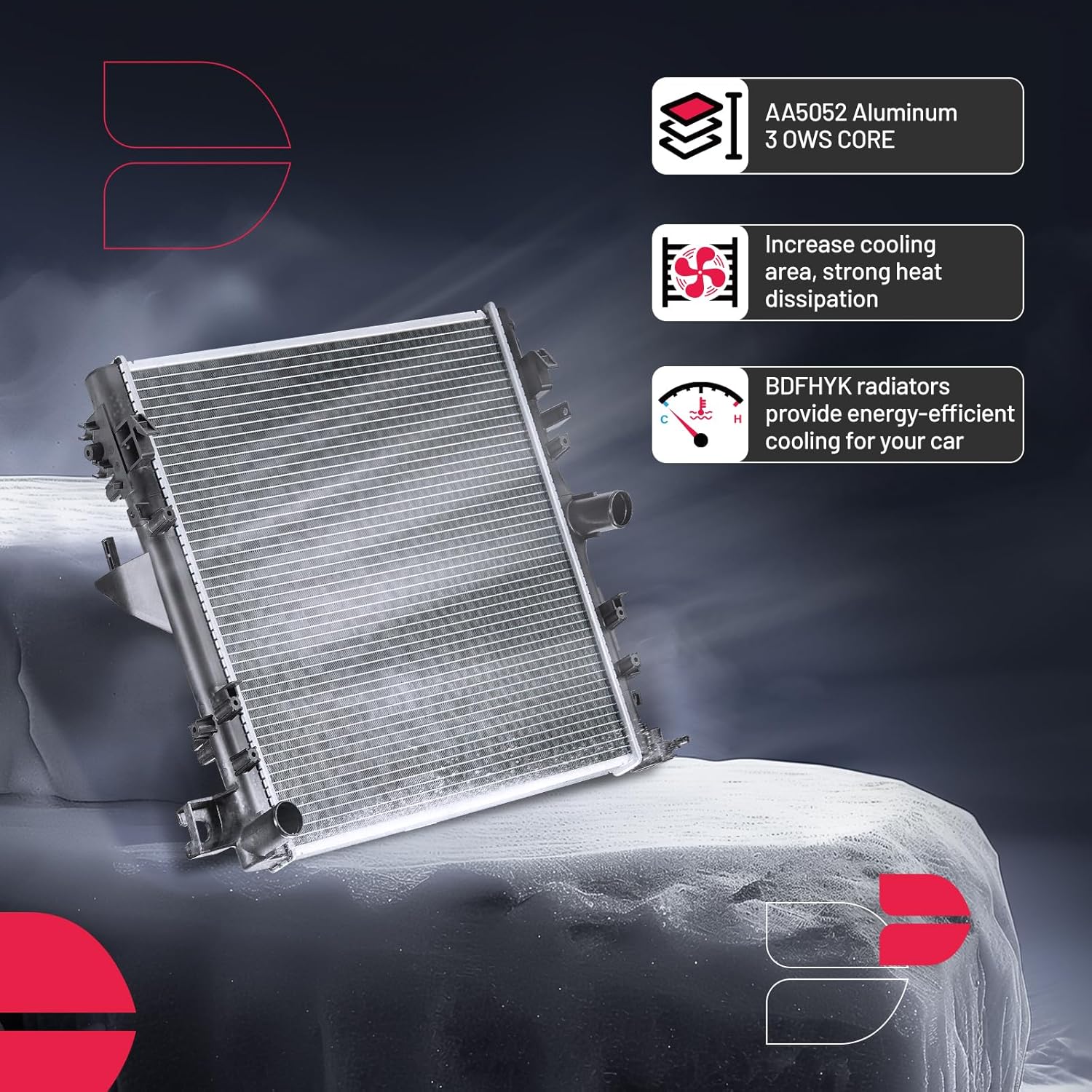 BDFHYK 3ROW-44MM RA-FM64-3 Aluminum Radiator Compatible with for Falcon 1960-1966, Mustang 1965-1966,Ranchero 1960-1965,Mercury Comet 1961-1965