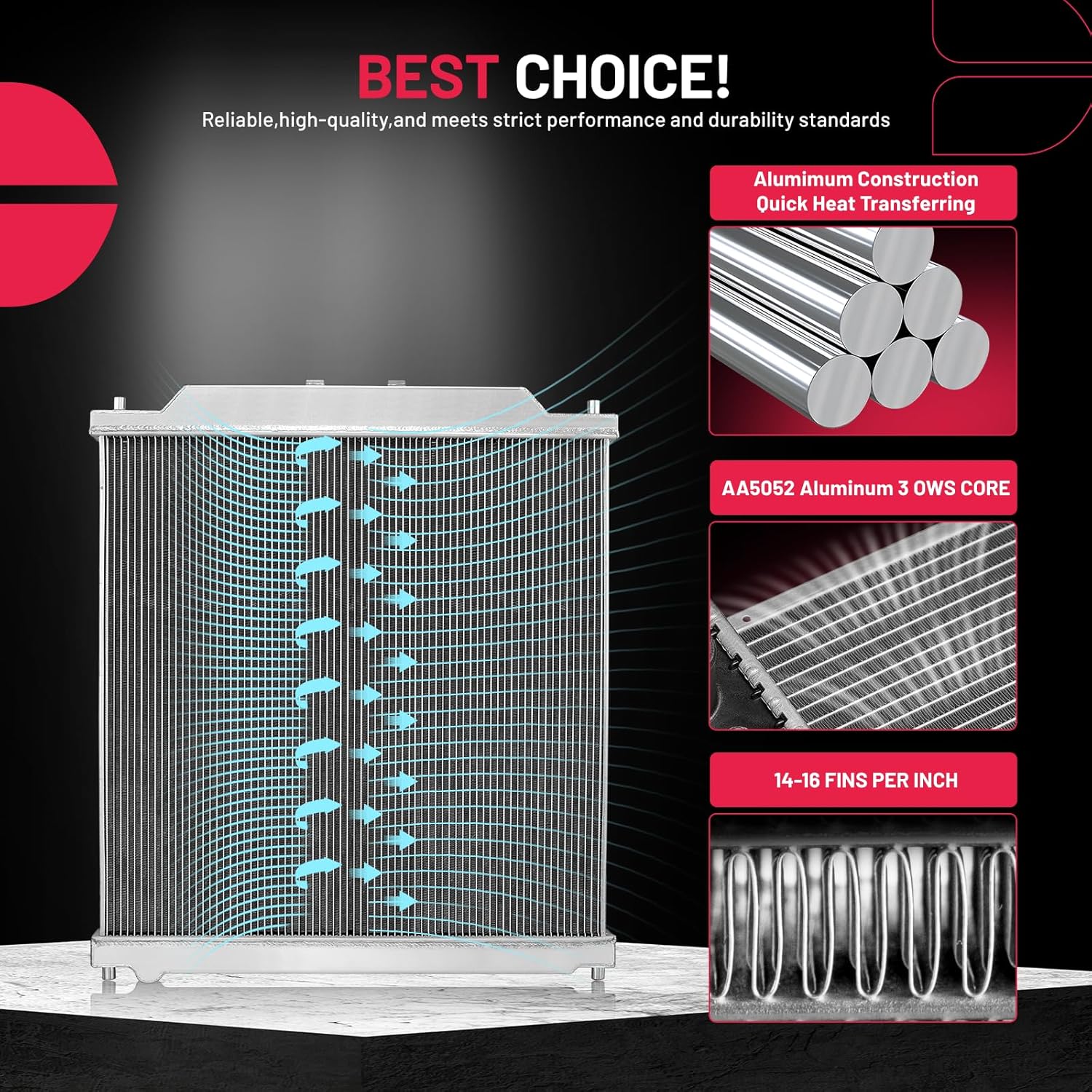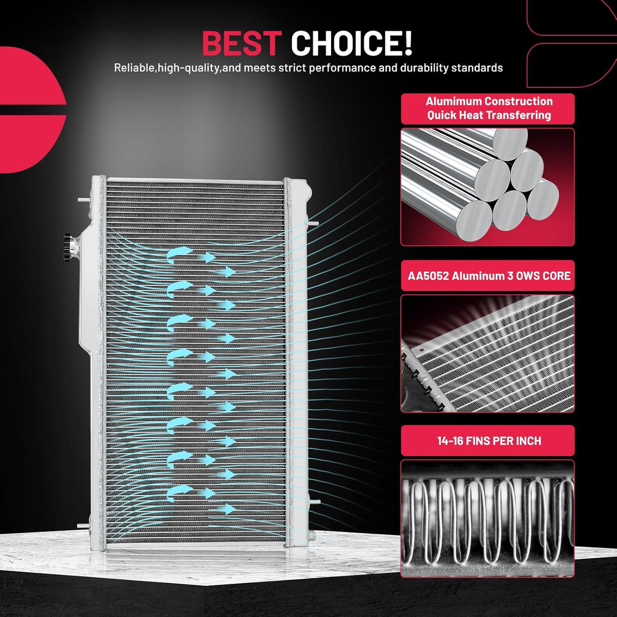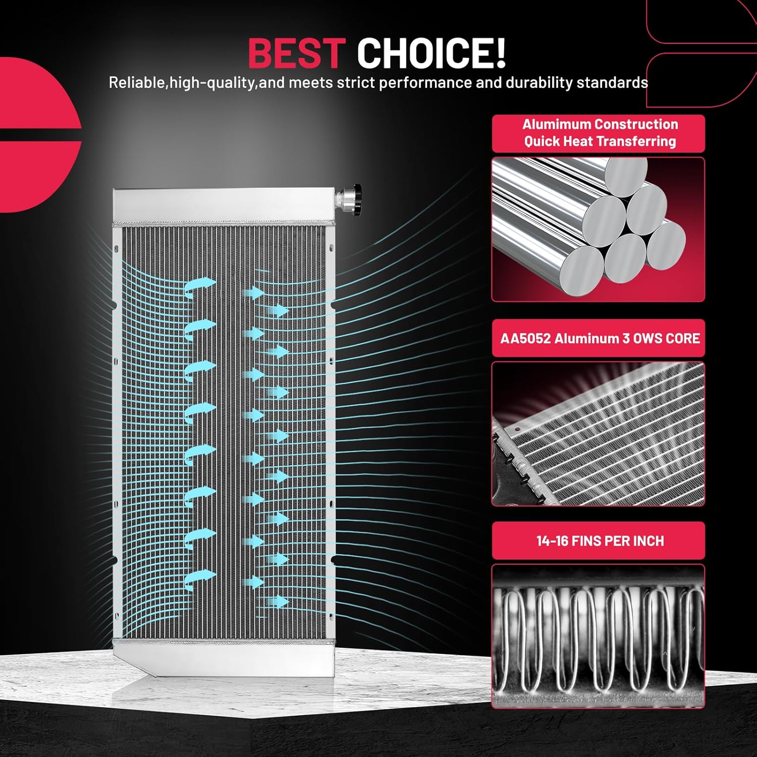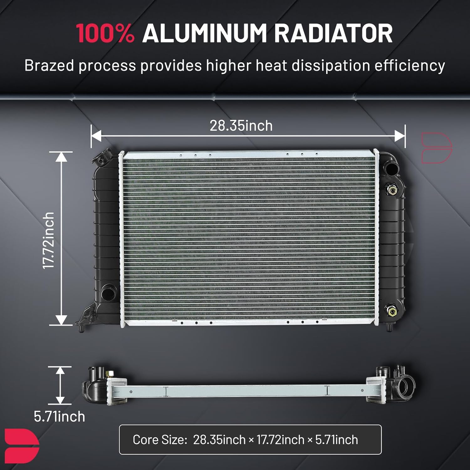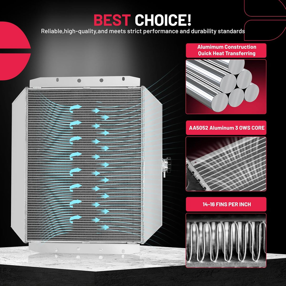BDFHYK 3ROW-44MM RA-FM64-3 Aluminum Radiator Compatible with for Falcon 1960-1966, Mustang 1965-1966,Ranchero 1960-1965,Mercury Comet 1961-1965