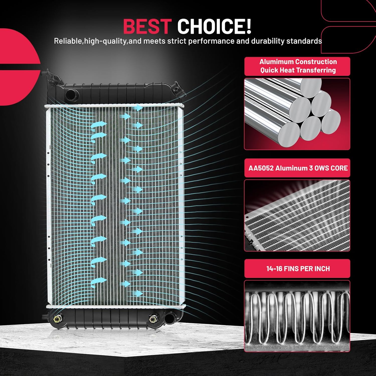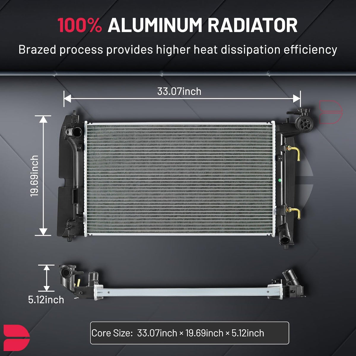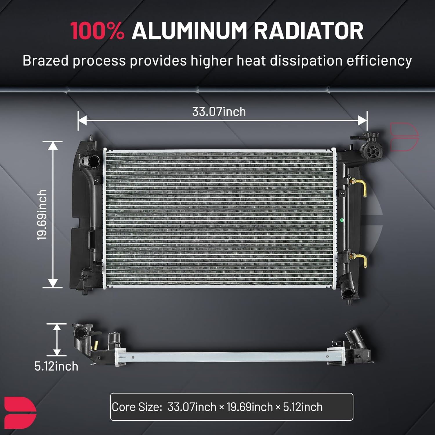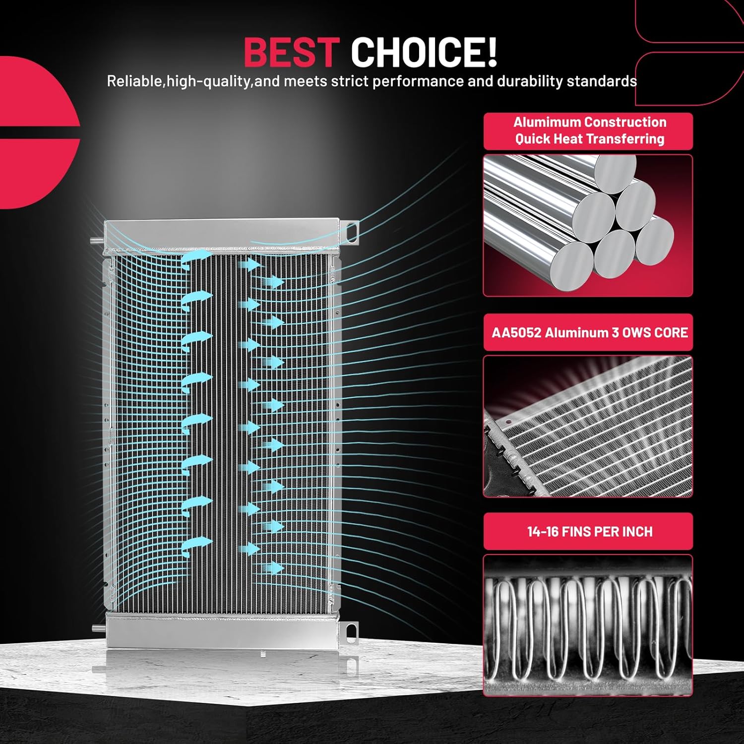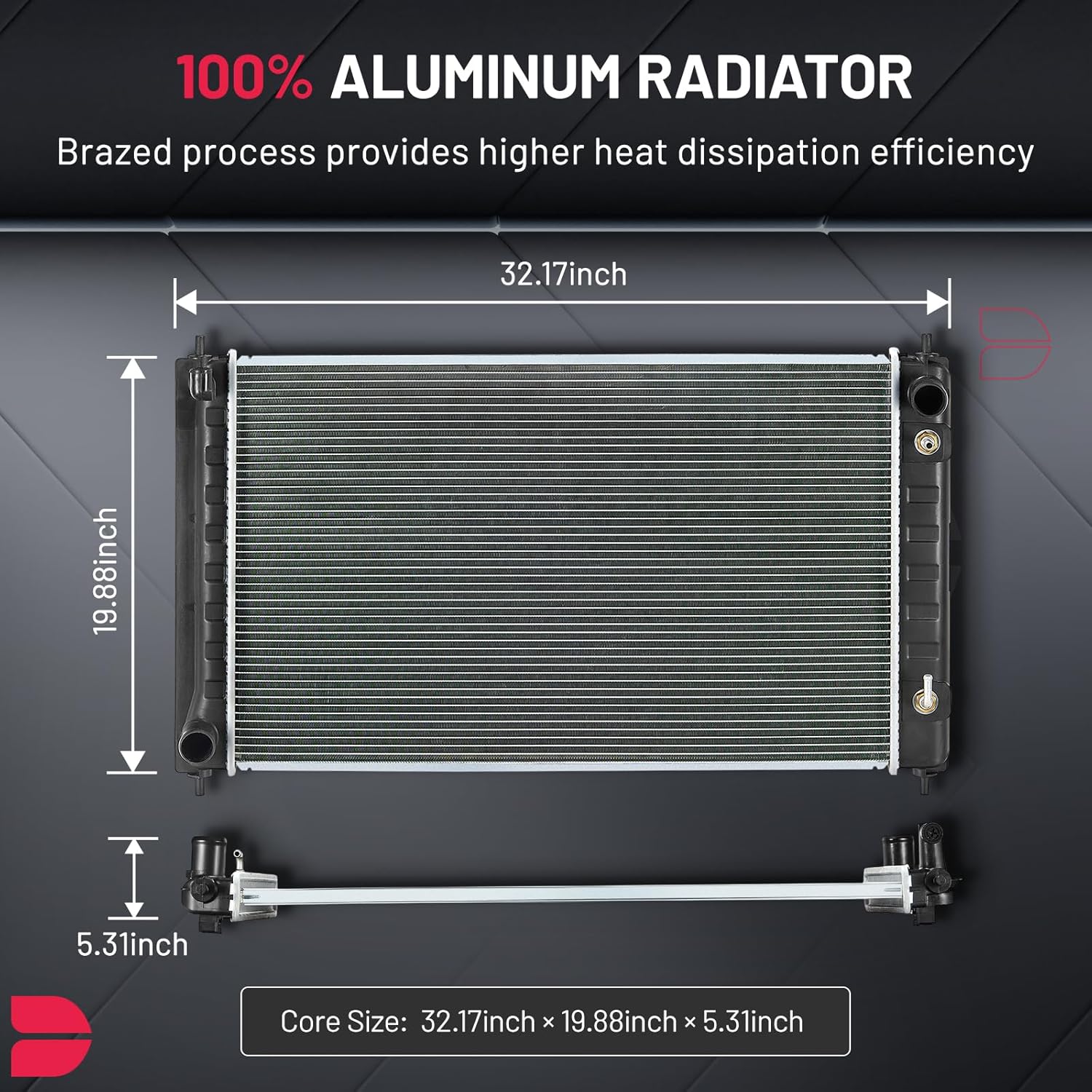 BDFHYK 3ROW-44MM RA-FM64-3 Aluminum Radiator Compatible with for Falcon 1960-1966, Mustang 1965-1966,Ranchero 1960-1965,Mercury Comet 1961-1965