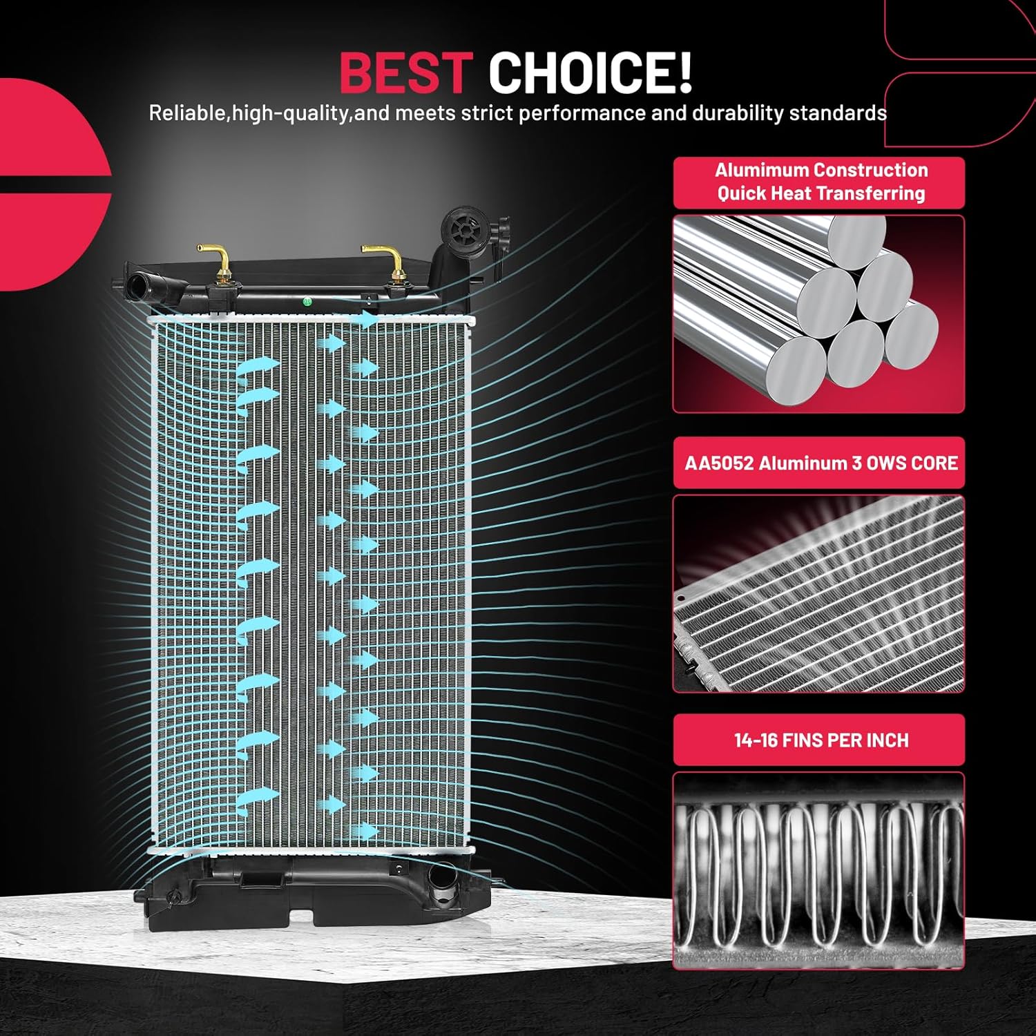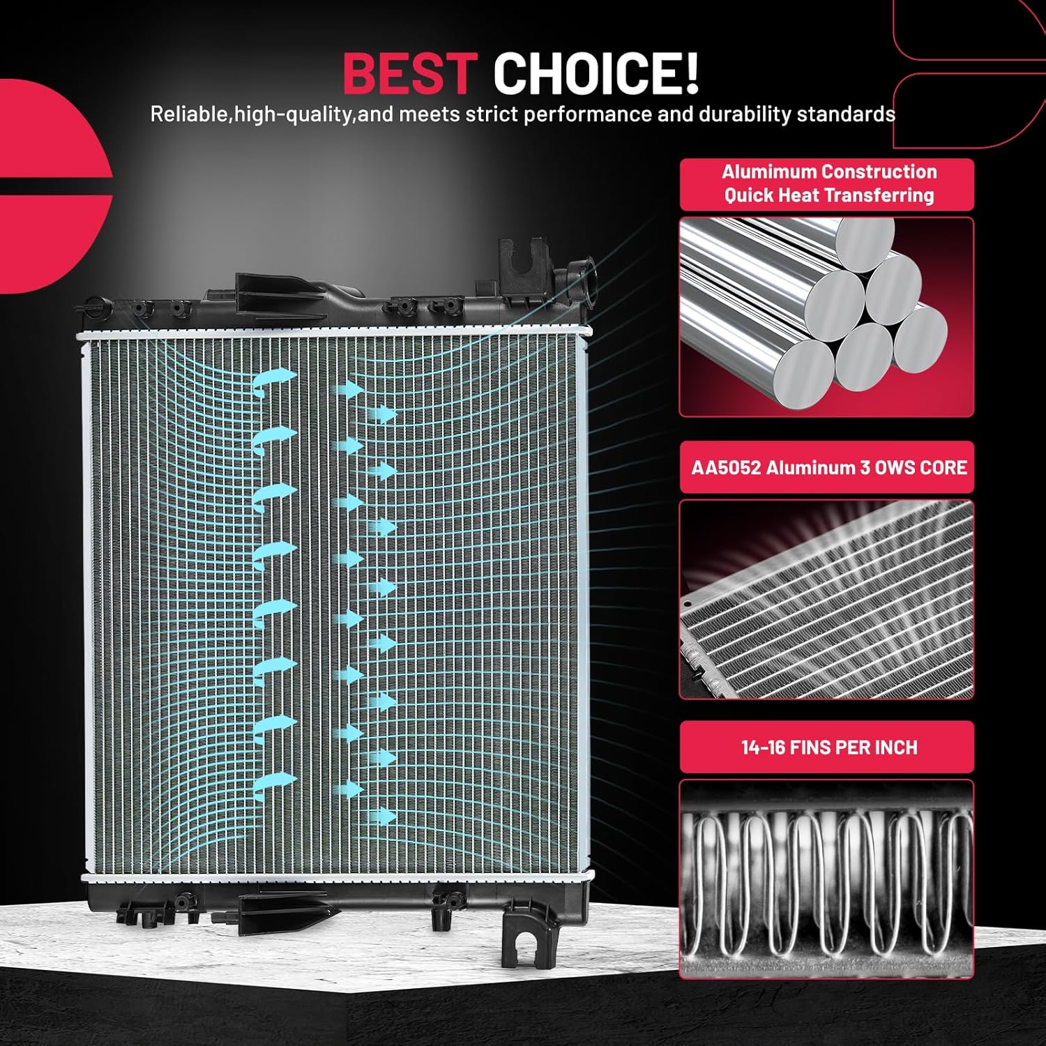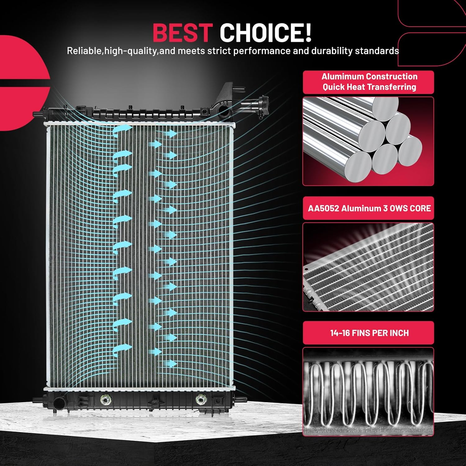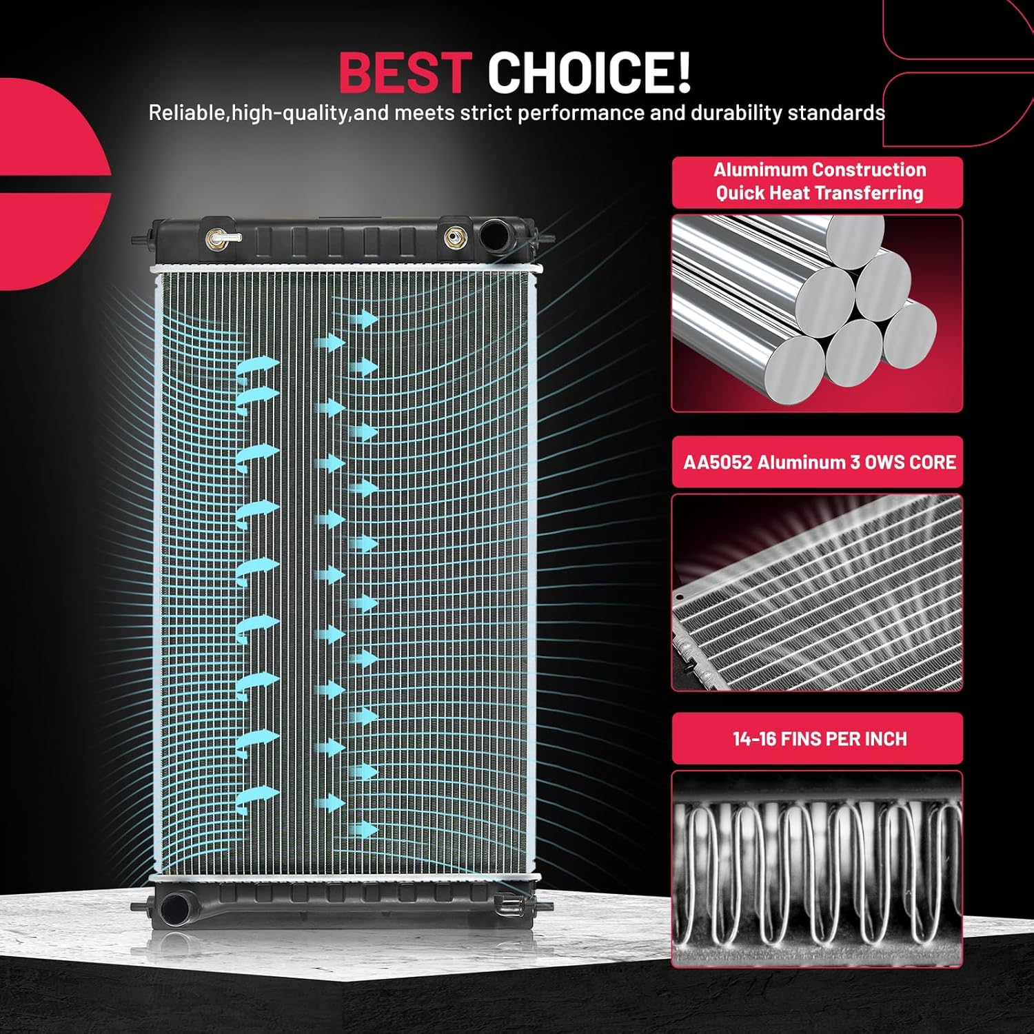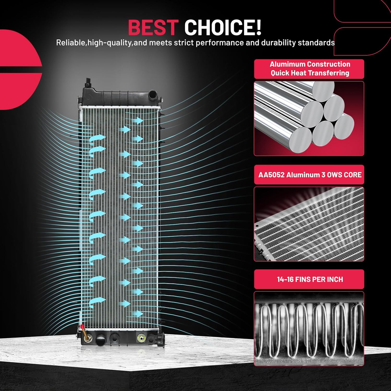 BDFHYK 3ROW-44MM RA-FM64-3 Aluminum Radiator Compatible with for Falcon 1960-1966, Mustang 1965-1966,Ranchero 1960-1965,Mercury Comet 1961-1965