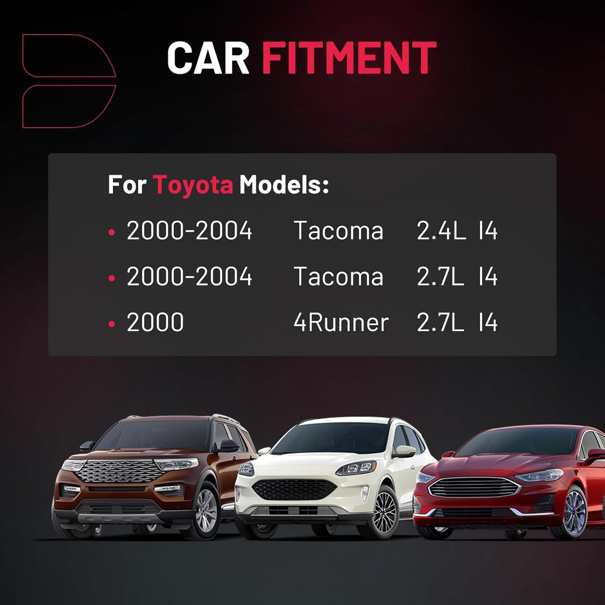 【Basic Info:】Ignition Coil UF323 & Spark Plugs 4996 Compatible with Toyota 2000-2004 Tacoma 2.4L 2.7L l4, 2000 4Runner 2.7L l4. Please check detail fitting info from pics or detail page. Please choose suitable coil pack and plugs with confidence.