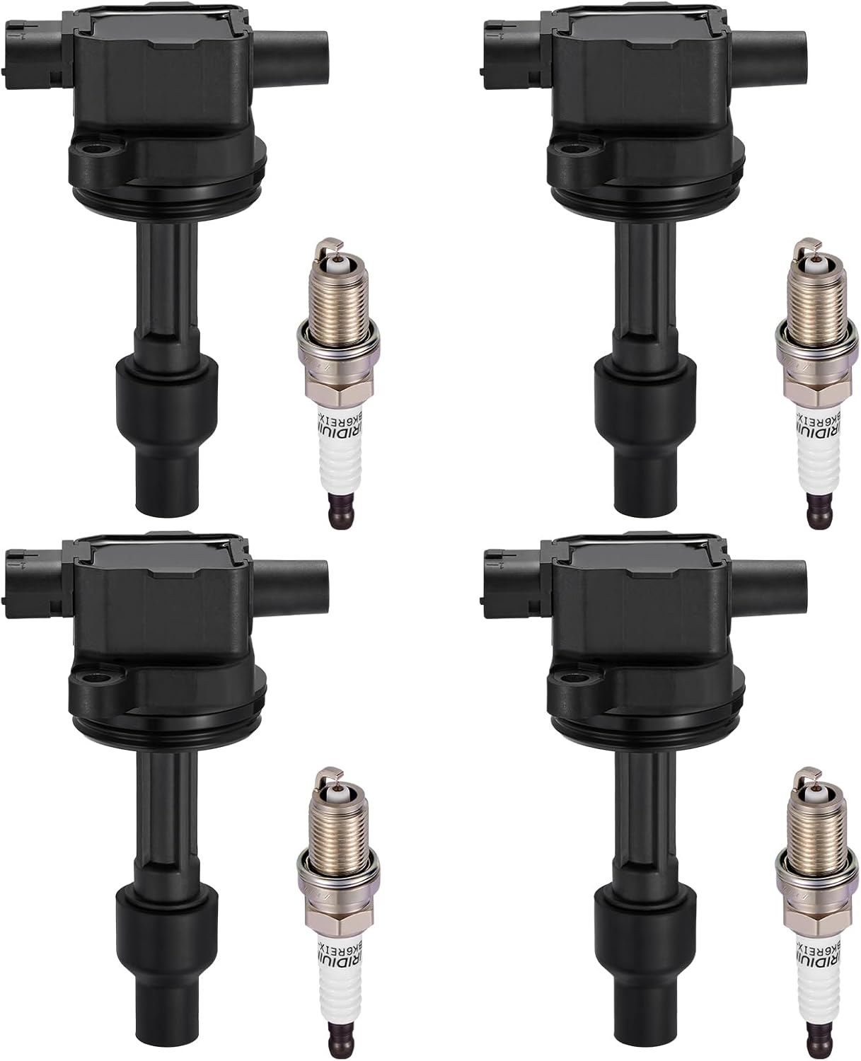 BDFHYK 4 Ignition Coil Pack UF365 and 4 Iridium Spark Plug 7092 Compatible with Volvo 2000-2004 S40 1.9L l4, 2000-2004 V40 1.9L l4 Coil for 5C1317 C724 CUF365 5076 GN10422