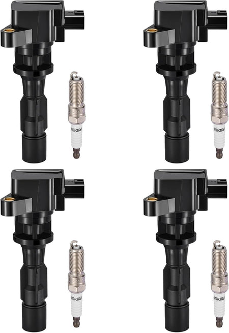 BDFHYK 4 Ignition Coil Pack UF604 and 4 Iridium Spark Plug 5019 Compatible with Mazda 2008-2010 5 2.3L l4, 2012-2015 5 2.5L l4 Coil for 5C1742 9212174 C753 E1104 E333 GN10623