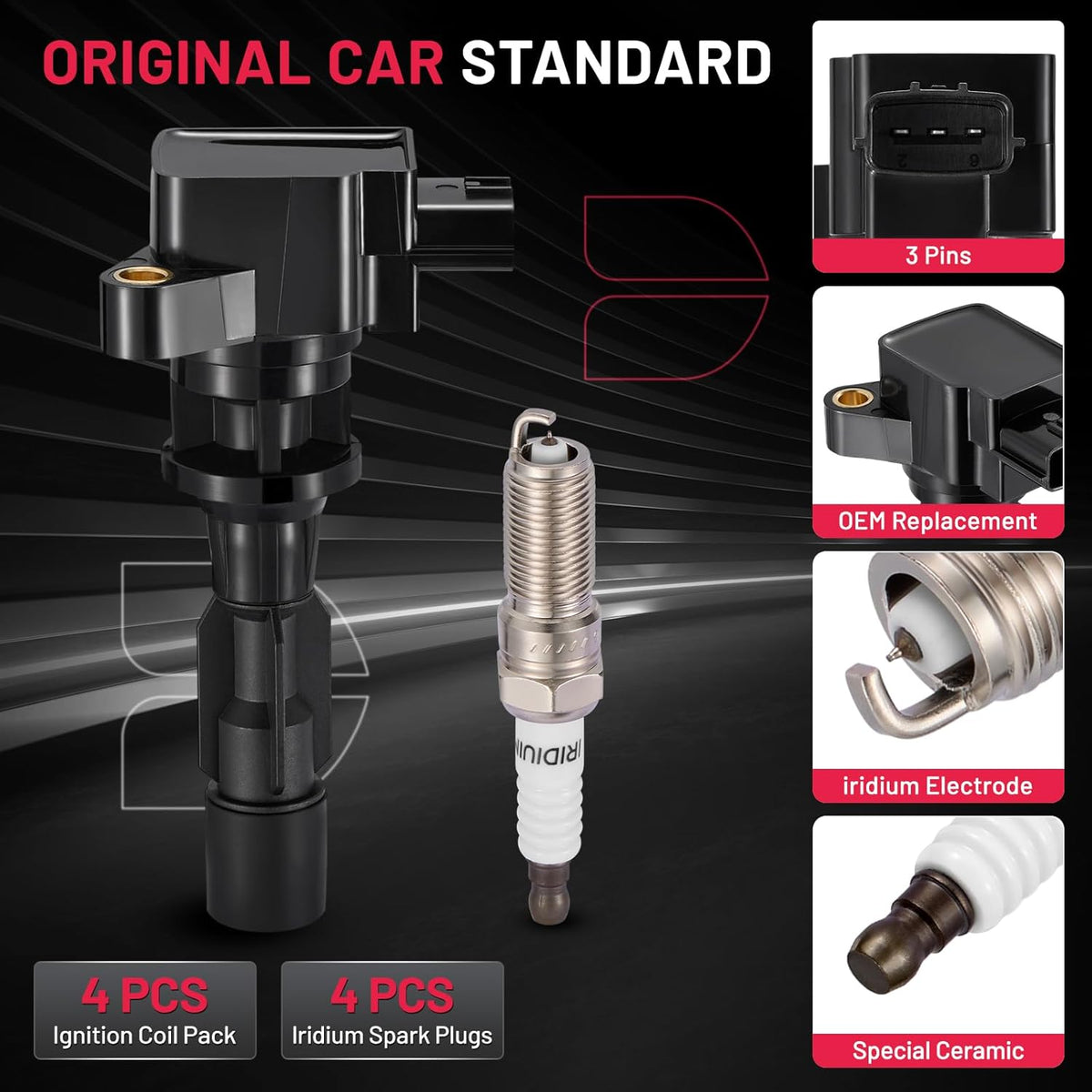 【Basic Info:】Ignition Coil UF604 & Spark Plugs 5019 Compatible with Mazda 2006-2007 5 2.3L l4. Please check detail fitting info from pics or detail page. Please choose suitable coil pack and plugs with confidence.