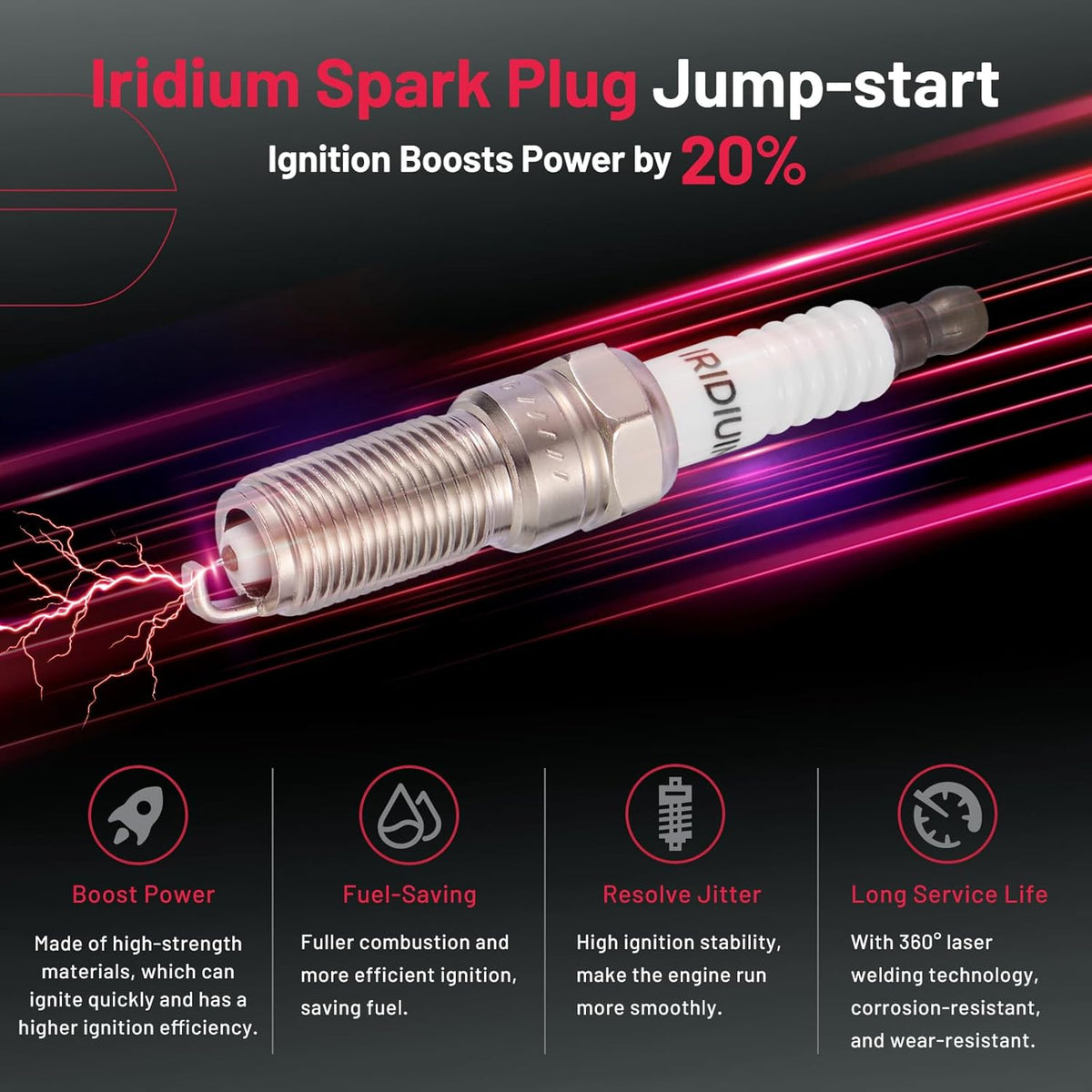 【Features of spark plug:】Professional spark plugs is made of high-tech materials. We choose iridium electrode and unique ceramic to make sure your car can have a new life after being installed. The car will start quickly and speed up in a short time as powerful as a new car. ‼Please check OE:5019.
