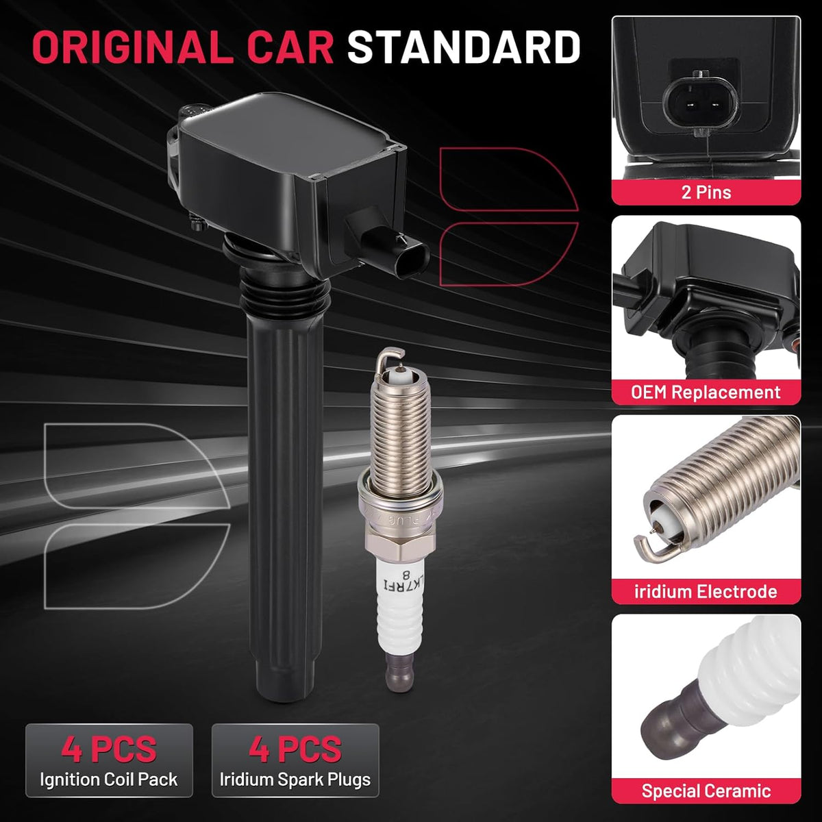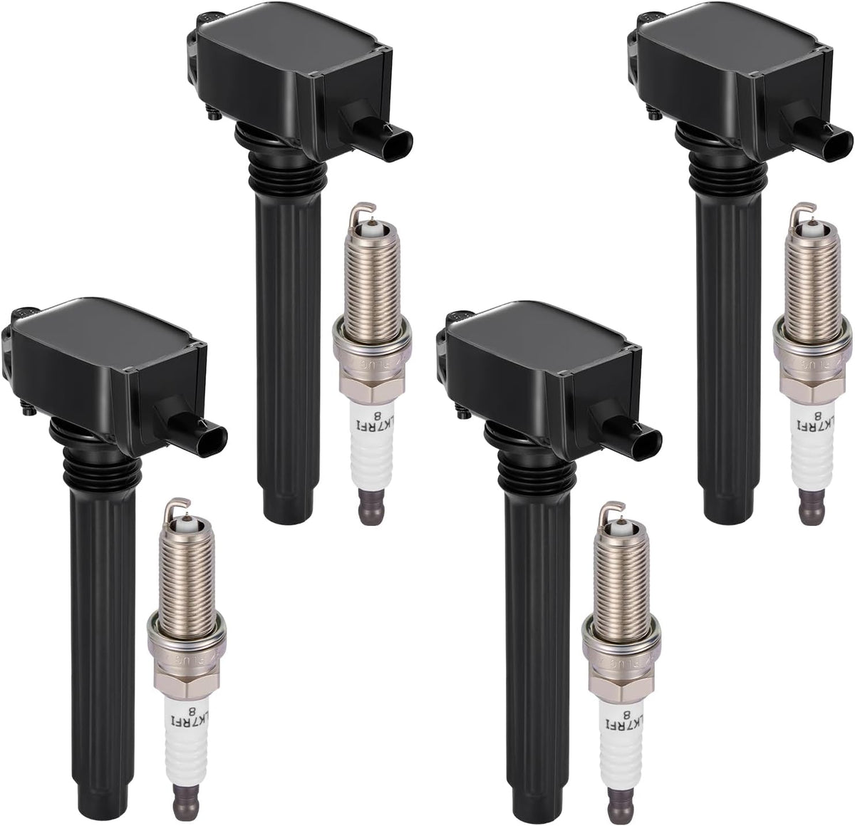 BDFHYK 4 Ignition Coil Pack UF648 and 4 Iridium Spark Plug 97390 Compatible with 300 Town & Country, Avenger Challenger Charger Journey,Cherokee Wrangler,1500 1500 Classic,Routan Coil for C1791 5C1848