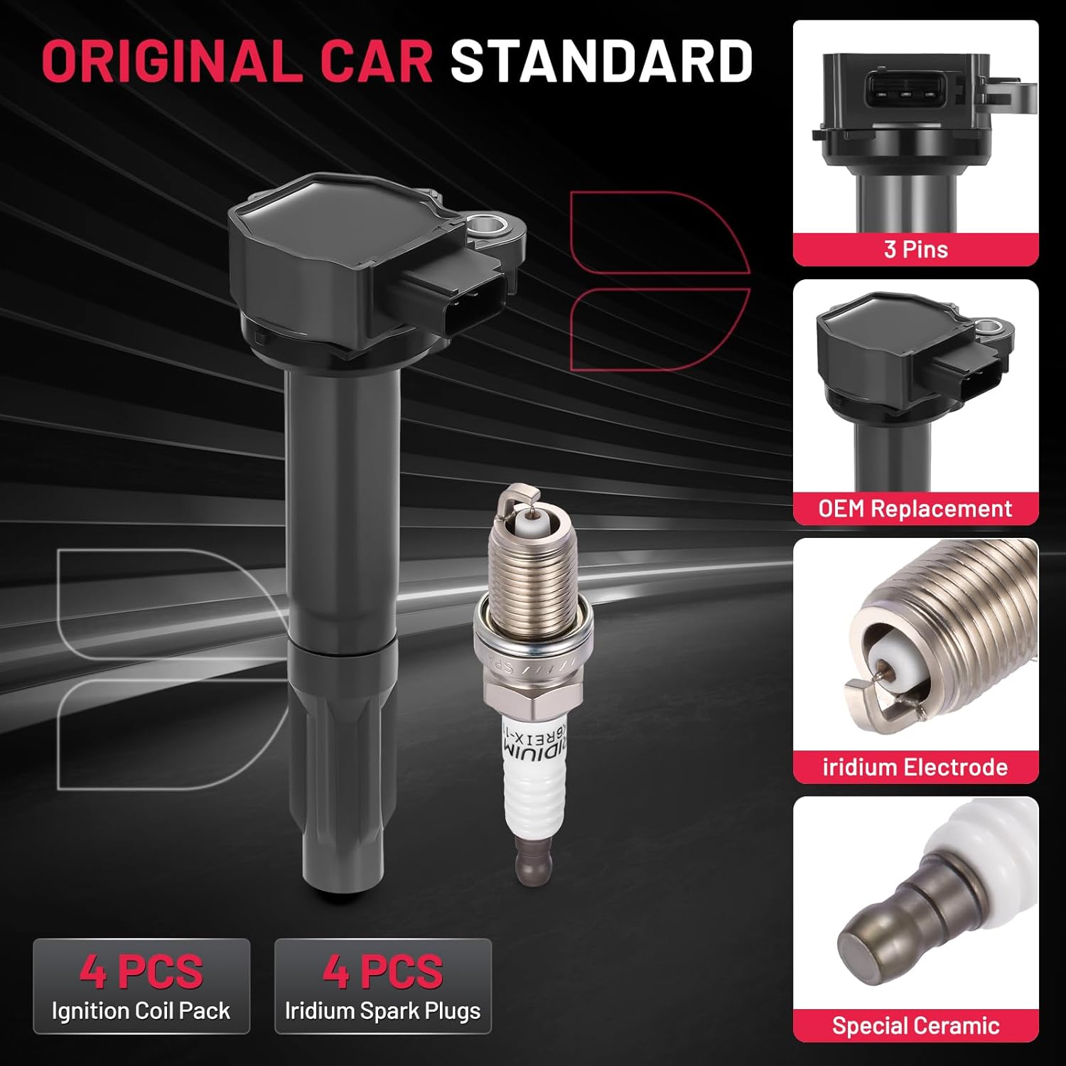 BDFHYK 4 Ignition Coil Pack UF668 and 4 Iridium Spark Plug 7092 Compatible with Subaru 2010-2012 Legacy 2.5L H4, 2010-2012 Outback 2.5L H4 Coil for 22433AA620 22433AA621
