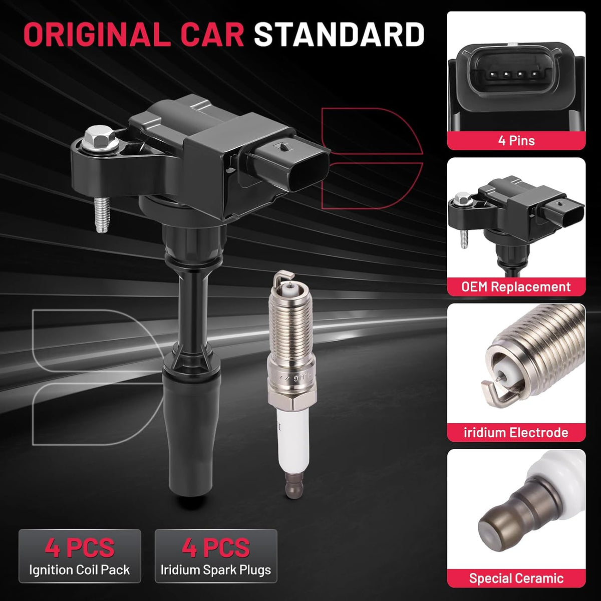 BDFHYK 4 Ignition Coil Pack UF680 and 4 Iridium Spark Plug 94489 Compatible with Envision Regal Regal Sportback Regal TourX ATS CT6 CTS Camaro Equinox Malibu Traverse Terrain Coil for 5C1884 C1827