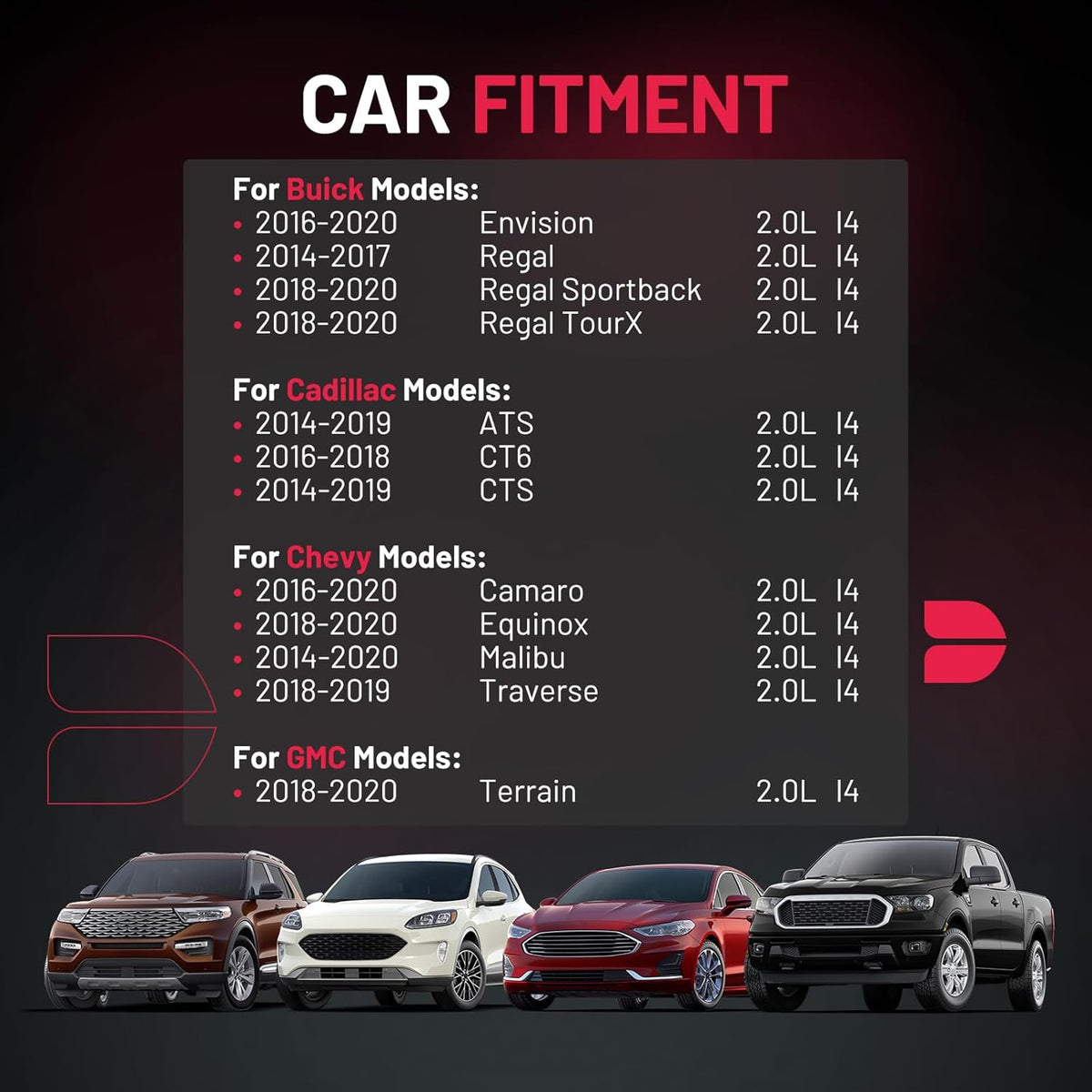 【Basic Info:】Ignition Coil UF680 & Spark Plugs 94489 Compatible with 2016-2020 Envision,2014-2017 Regal,2018-2020 Regal Sportback,2018-2020 Regal TourX; 2014-2019 ATS,2016-2018 CT6,2014-2019 CTS; 2016-2020 Camaro,2018-2020 Equinox,2014-2020 Malibu,2018-2019 Traverse; 2018-2020 Terrain. Please check detail fitting info from pics or detail page. Please choose suitable coil pack and plugs with confidence.