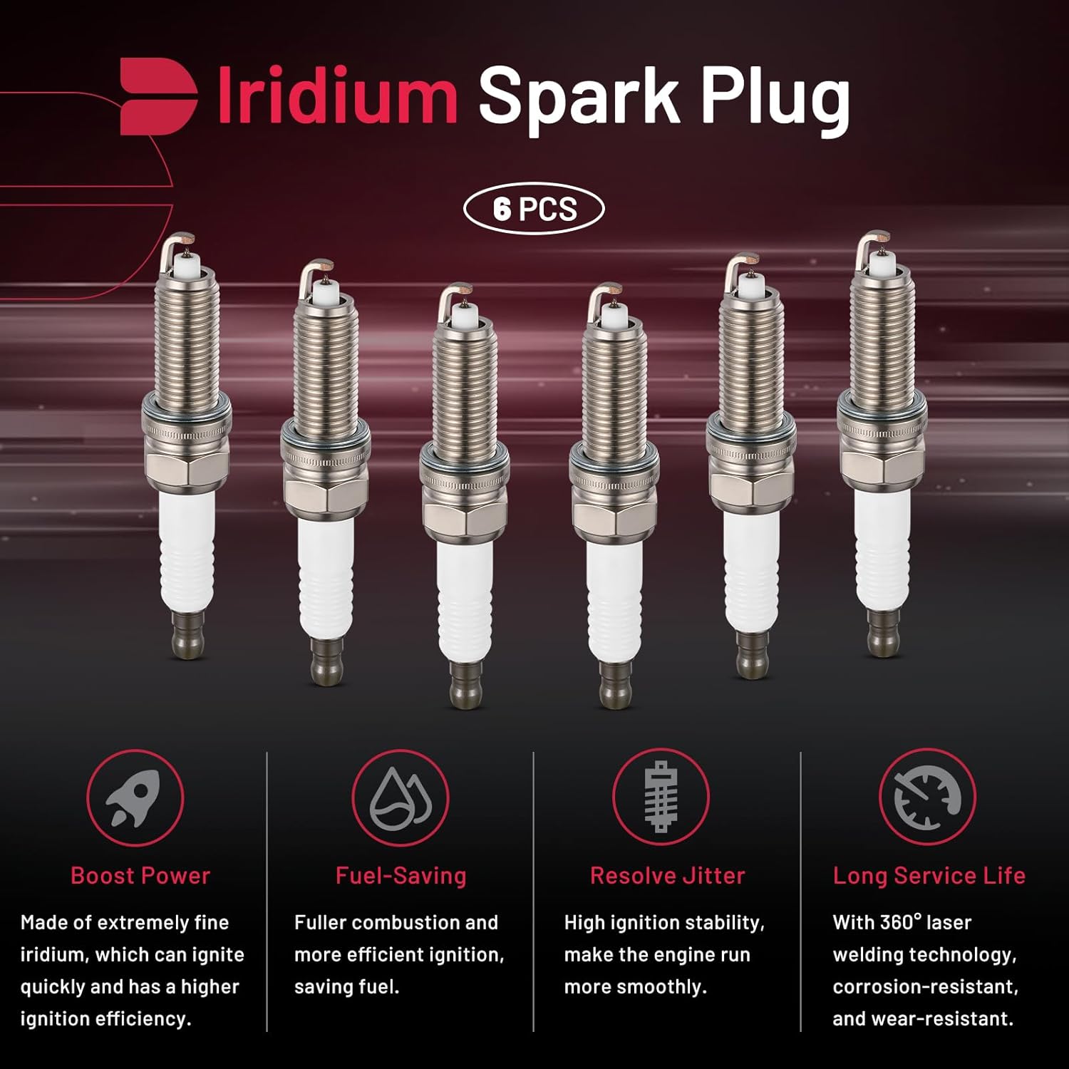 BDFHYK 4024102498 Iridium Spark Plugs Compatible with Jeep Wrangler 2012-2017 3.6L 3604CC 220Cu. In. V6 GAS DOHC Naturally Aspirated, Set of 6