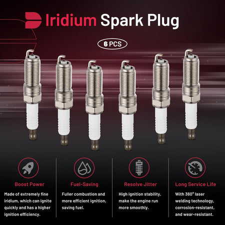 BDFHYK 4024168967 Iridium Spark Plugs Compatible with Dodge 2001-2010 Grand Caravan 3.3L 3.8L V6, Set of 6