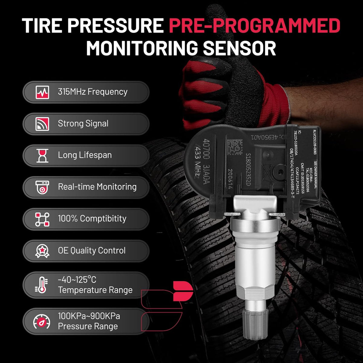 Perfect Performance: This brand new tire pressure monitor system (TPMS) is equipped with automotive-grade 900kPa chips and a high-capacity battery, ensuring a strong signal, real-time monitoring, and a long lifespan. The sensor lasts up to 3 years with an average of 10,000 miles per year and can handle temperatures up to 120°C.