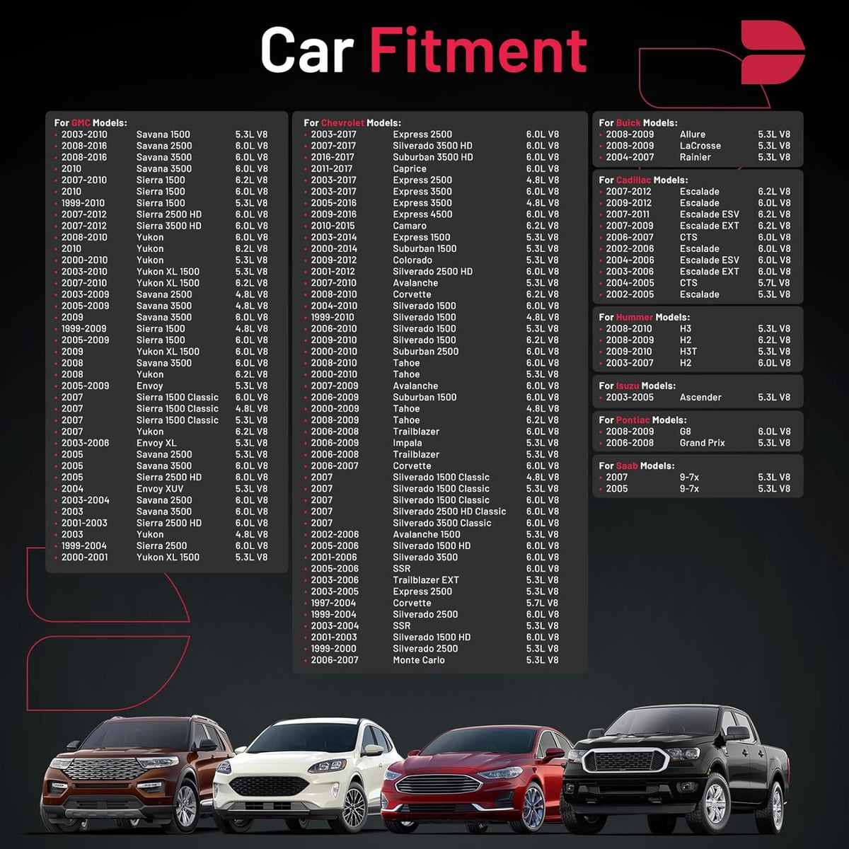 【Compatibility Information】:Spark Plug 41-962 Compatible with Buick Allure LaCrosse Rainier; Compatible with Cadillac CTS Escalade ESV EXT; Compatible with Chevy Avalanche 1500 Camaro Caprice Colorado Corvette Express 1500/2500/3500/4500 Impala Monte Carlo Silverado 1500/2500/3500 HD Classic SSR Suburban 1500 2500 3500HD Tahoe Trailblazer EXT; Compatible with GMC Envoy XL XUV Savana 1500/2500/3500 Sierra 1500/2500 HD Classic 3500 HD Yukon XL 1500.