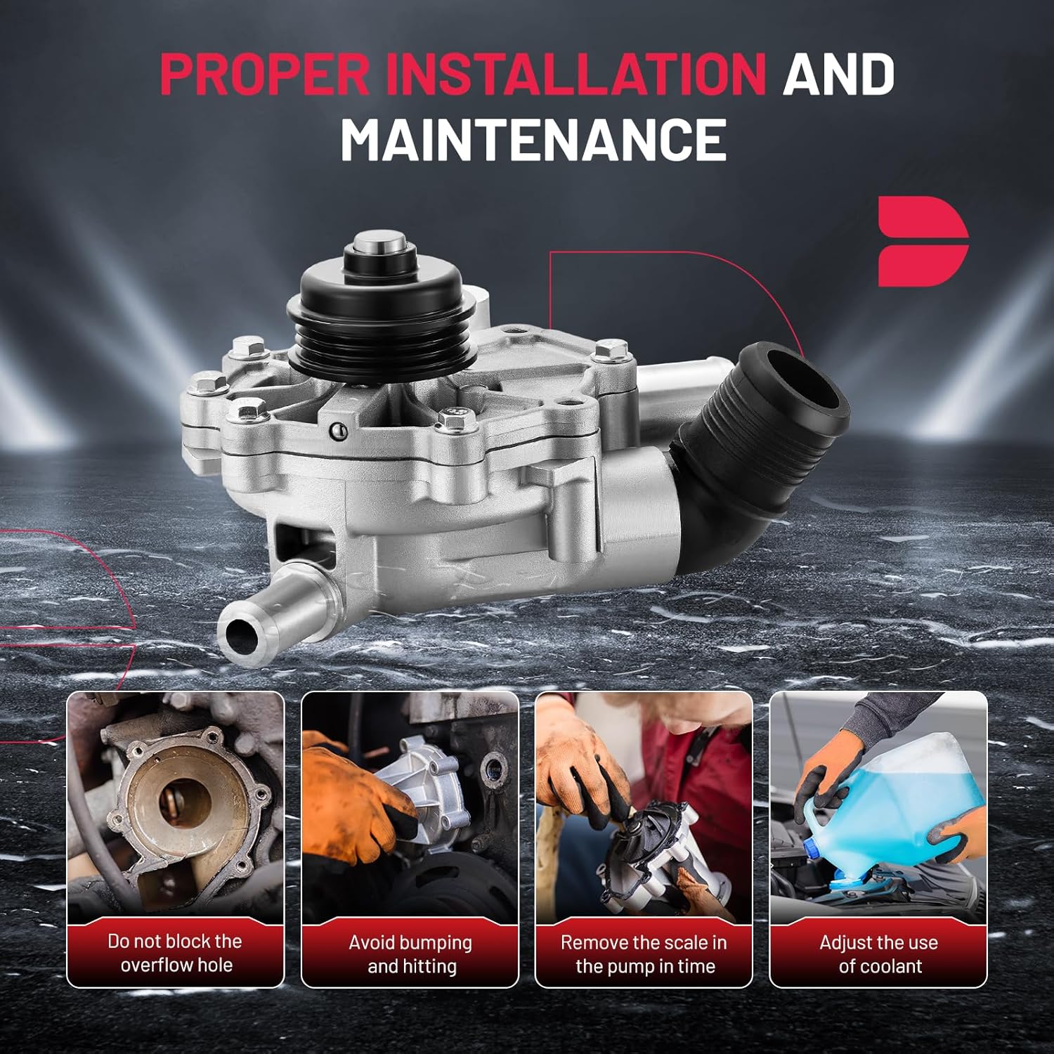 [PREMIUM QUALITY] This engine water pump is manufactured in ISO/TS16949 2009 certified facilities, built to meet or exceed OE specifications, Undergone a rigorous testing before shipping to ensure 100% reliability and leak-free performance.