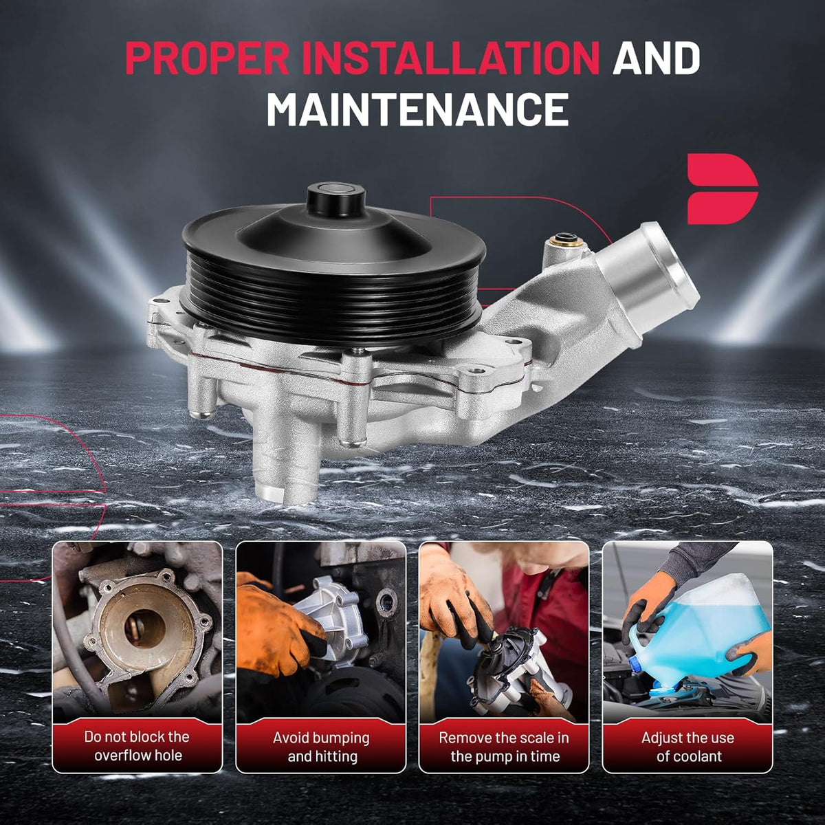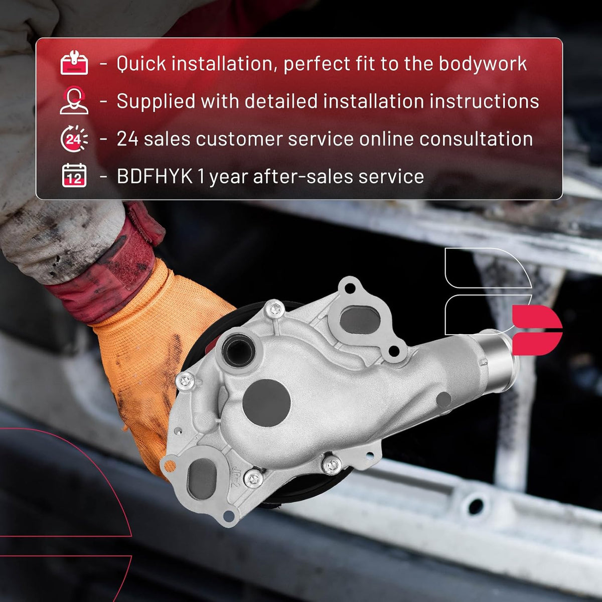[PREMIUM QUALITY] This engine water pump is manufactured in ISO/TS16949 2009 certified facilities, built to meet or exceed OE specifications, Undergone a rigorous testing before shipping to ensure 100% reliability and leak-free performance.