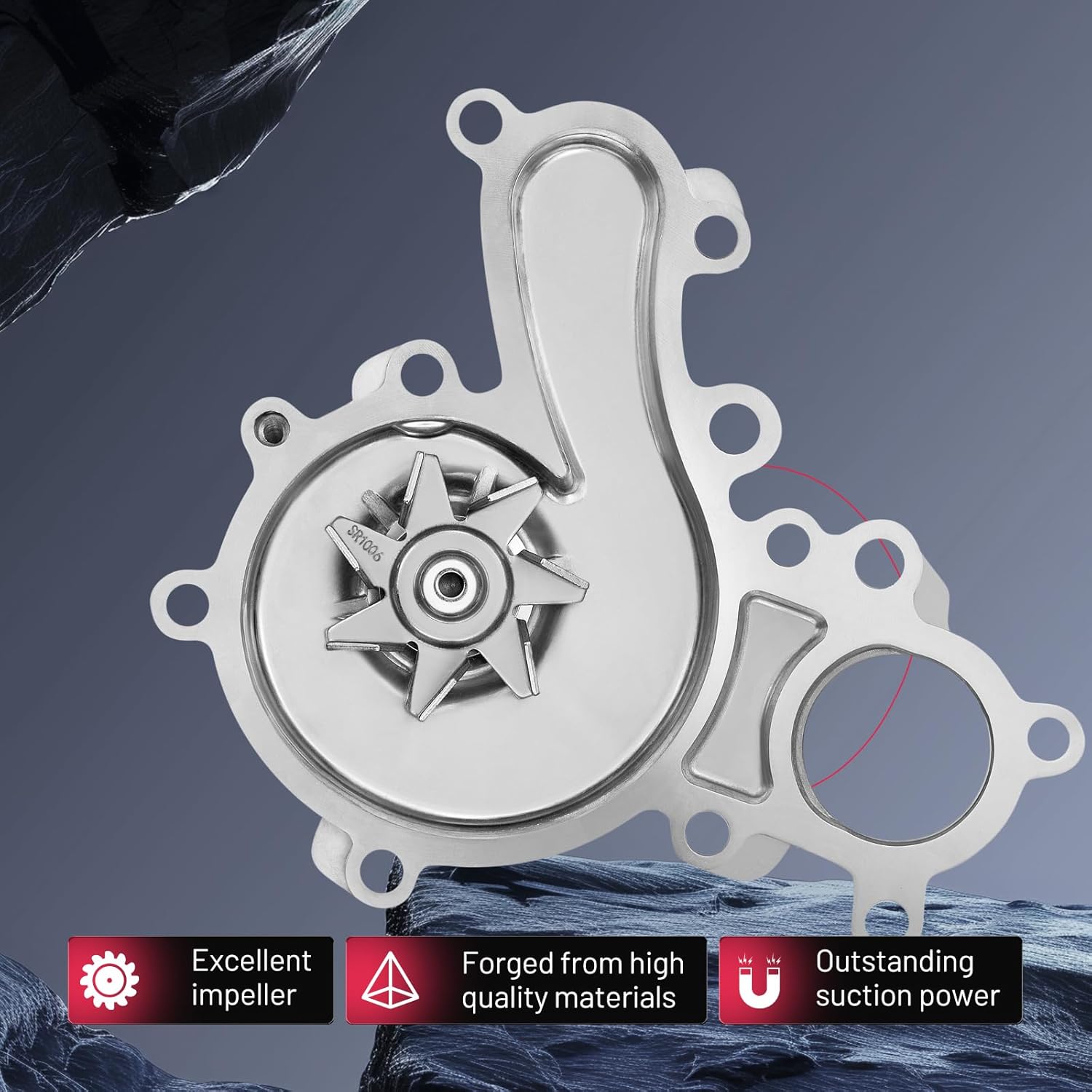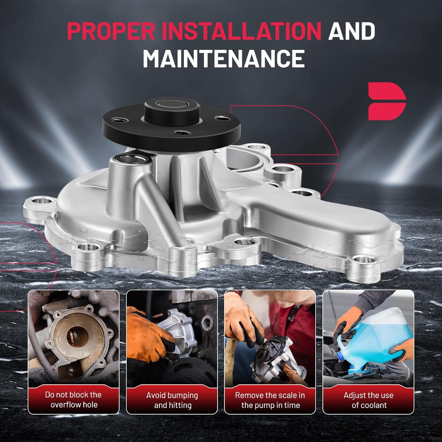[PREMIUM QUALITY] This engine water pump is manufactured in ISO/TS16949 2009 certified facilities, built to meet or exceed OE specifications, Undergone a rigorous testing before shipping to ensure 100% reliability and leak-free performance.