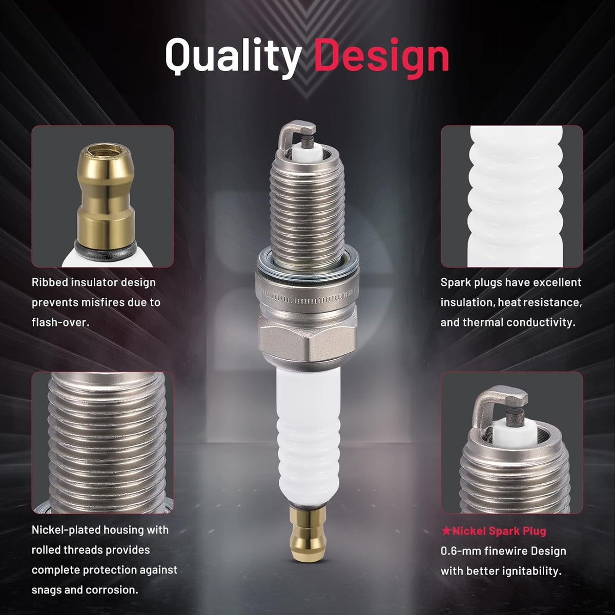 【Spark Plug Features】:BDFHYK Spark plugs with superior ignition performance, faster and more sensitive ignition jumps, significant increase in power performance, saving energy consumption in the ignition process, efficiently adapted to the needs of the car. Exquisite production process, 100% brand new high quality auto parts, OE level durability