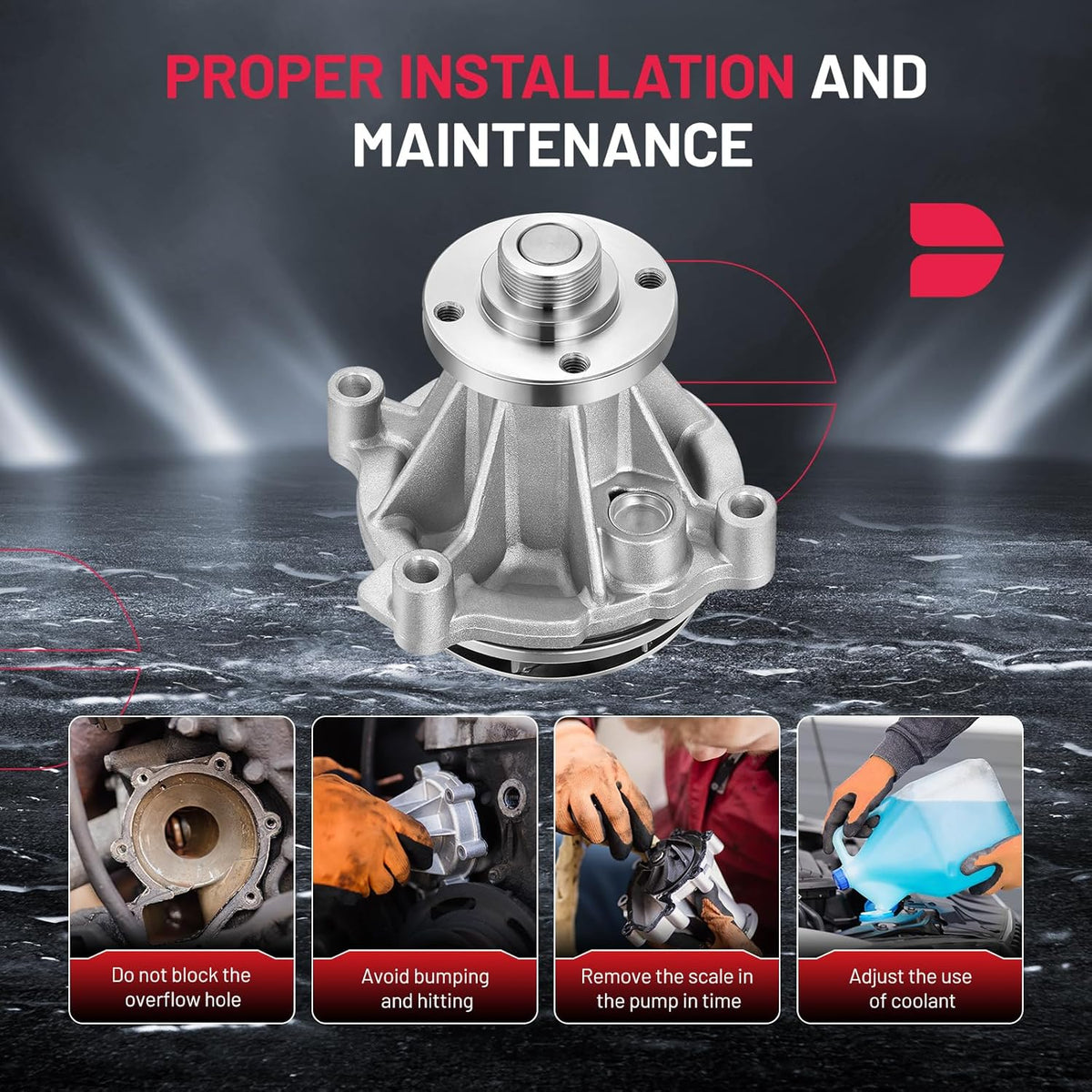 [PREMIUM QUALITY] This engine water pump is manufactured in ISO/TS16949 2009 certified facilities, built to meet or exceed OE specifications, Undergone a rigorous testing before shipping to ensure 100% reliability and leak-free performance.