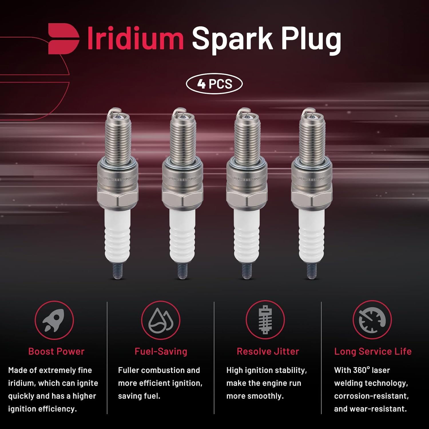 BDFHYK 4548 Iridium Spark Plugs Compatible with Yamaha Compatible with Triumph for Kawasaki for KTM for Suzuki Universal Motorcycle Spark Plugs Replacement CR9EK Set of 4
