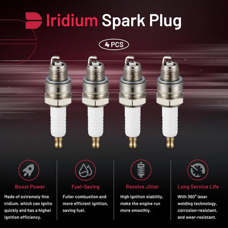 BDFHYK 4838 Iridium Spark Plugs Compatible with Mercury Mariner 40hp 45hp 50hp 60hp 125hp etc. Boat Engine Replacement for BP8H-N-10, Set of 4