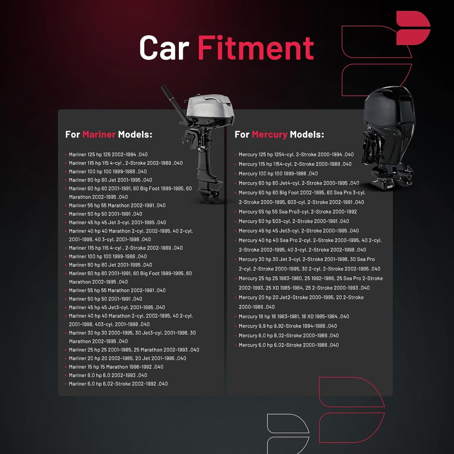 【Compatibility Information】:Universal Spark Plug 4838 compatible with Mercury Mariner 125 hp 115 hp 100 hp 80 hp 60 hp 55 hp 50 hp 45 hp 40 hp 30 hp 25 hp 20 hp 18 hp 15 hp 9.9 hp 8.0 hp 6.0 hp Marathon etc.Please see images or details page for complete Compatibility information