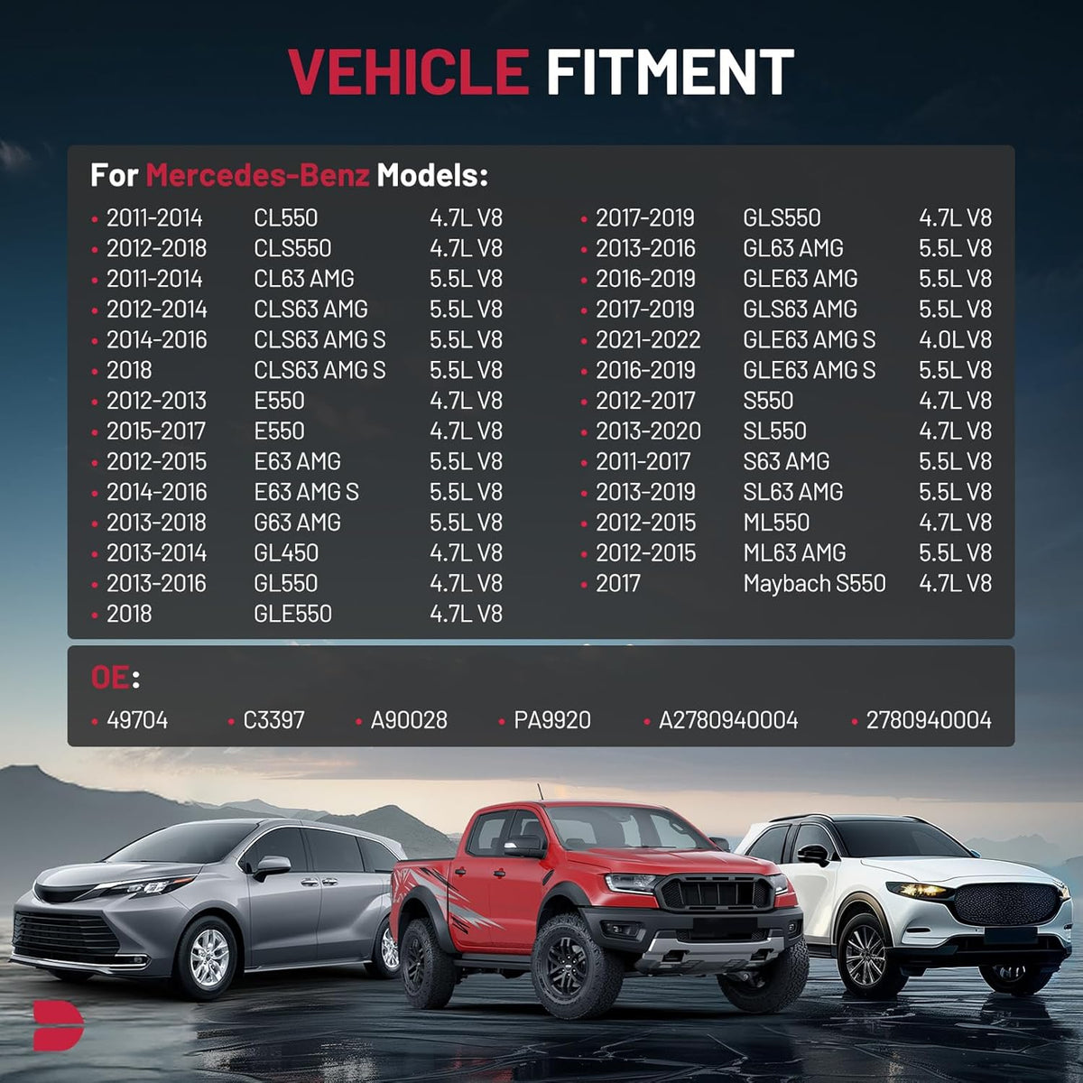 【COMPATIBILITY】 Compatible with Mercedes-Benz GL450 2013-2014, GL550 2013-2016, GL63 AMG 2013-2016, GLE550 2018, GLE63 AMG 2016-2019, GLE63 AMG S 2016-2022, GLS550/GLS63 AMG 2017-2019, Maybach S550 2017, ML550/ML63 AMG 2012-2015, S550 2012-2017, S63 AMG 2011-2017, SL550 2013-2020, SL63 AMG 2013-2019.