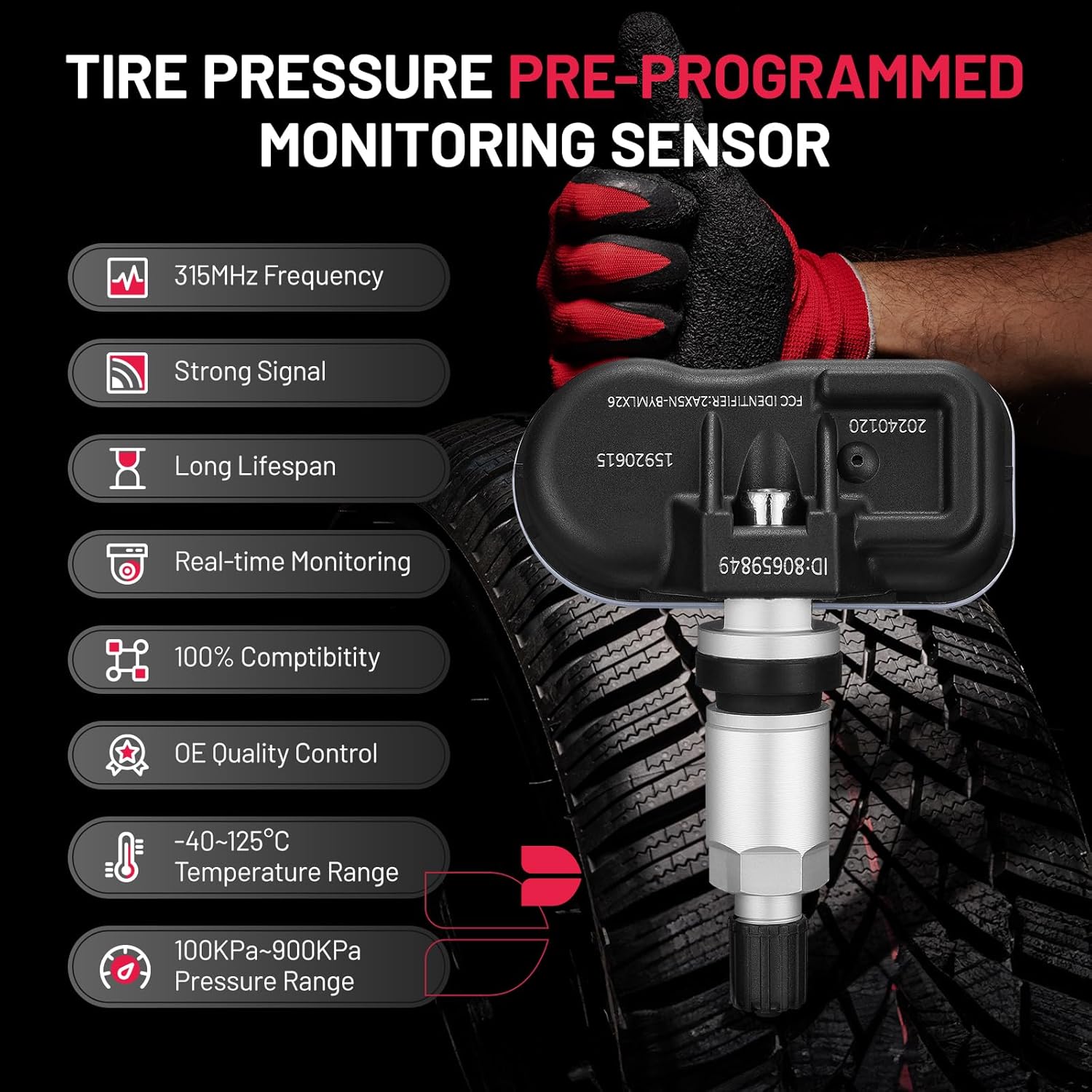 【Ready to Use & Easy Installation】: Our tire pressure sensor comes pre-programmed and ready for quick pairing with compatible vehicles. After installation, simply follow the standard TPMS relearn procedure as outlined in the included user guide. No additional programming is needed—just install, relearn, and go
