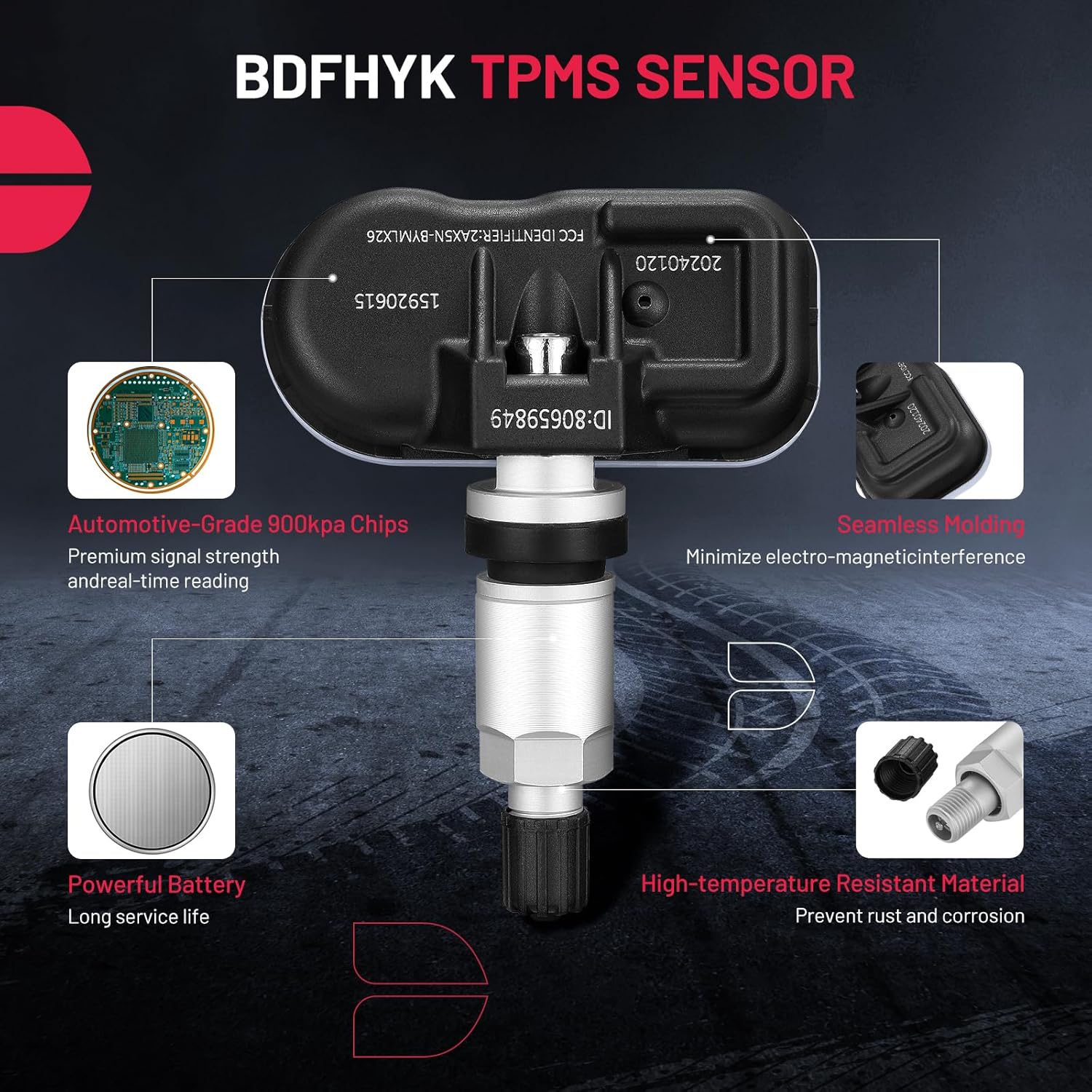 【Important Notice & Warranty】: BDFHYK offers a 1-year limited warranty and responsive customer support to ensure your satisfaction. 2. Before placing your order, please use Amazon's Part Finder tool to verify vehicle compatibility. 10. Use an OBDII scan tool to check sensor data—such as frequency, PSI, and battery status—before mounting to confirm proper functionality and compatibility