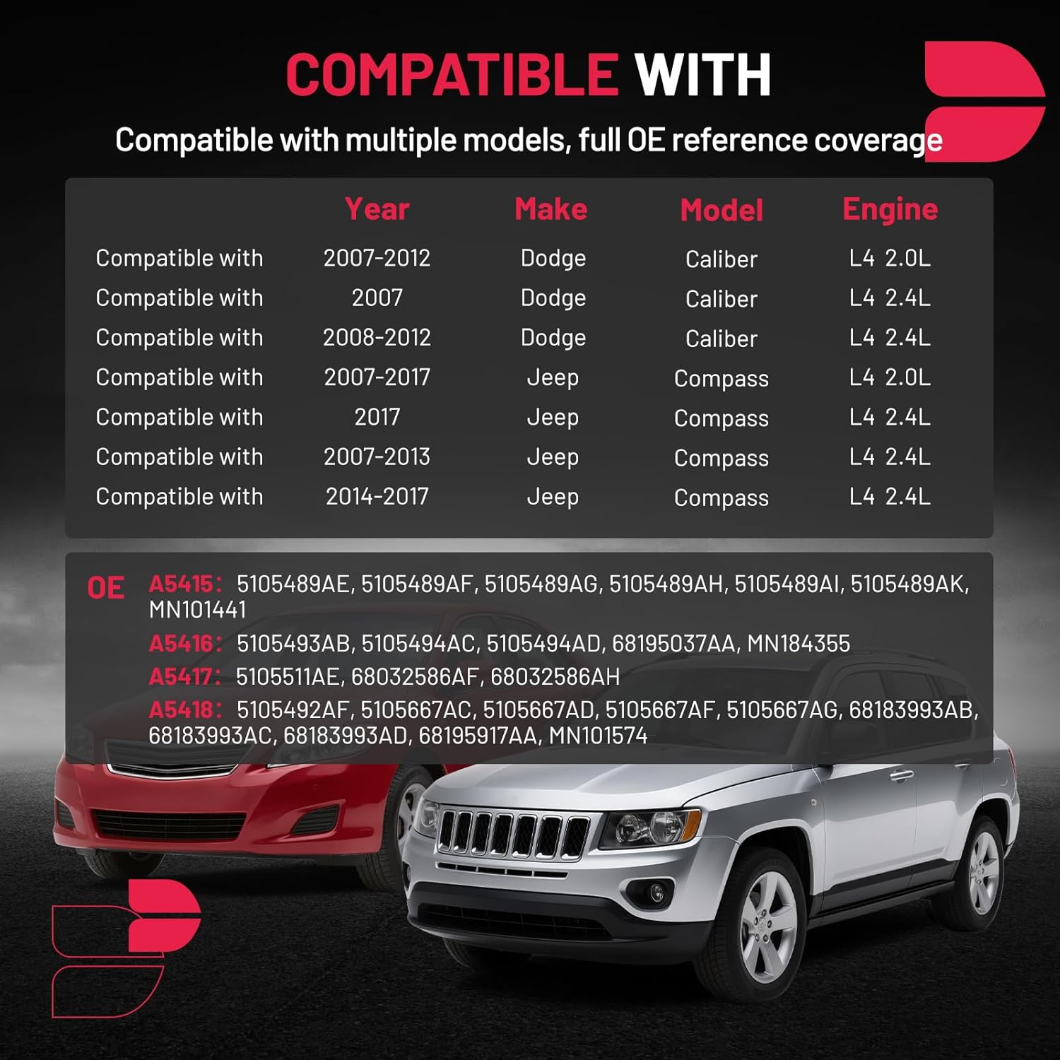 【Compatible with】Compatible with Dodge Caliber 2007-2012 L4 2.0L/L4 2.4L,Compatible with Jeep Compass 2007-2017 L4 2.0L/L4 2.4L
