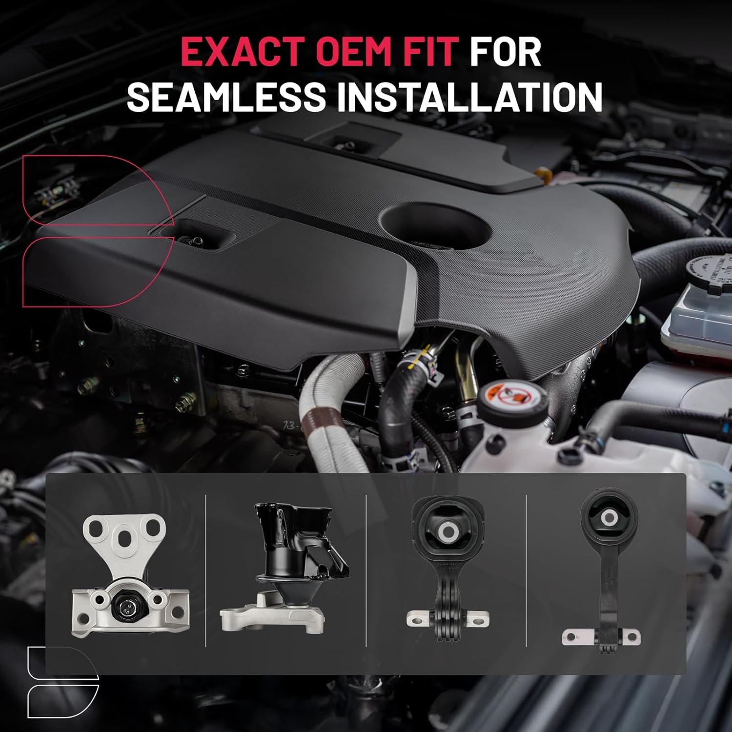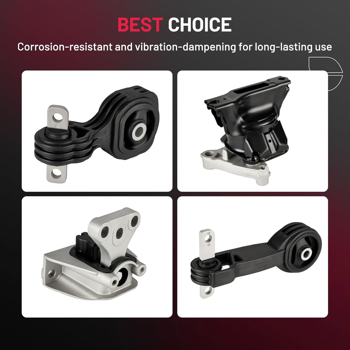 【Package Included】1x Front Motor Mount Part Number# A4530,9280W, EM9280,1x Transmission Mount Part Number# A4546,9216,EM9216,1x Front Upper Torque Strut Mount Part Number# A4543, 9213, EM9213,1x Rear Lower Torque Strut Mount Part Number# A4534, 9218, EM9218
