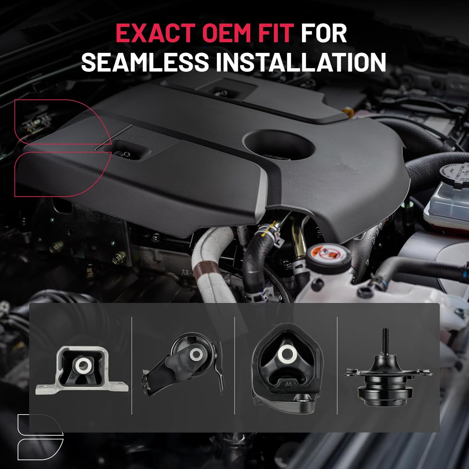 【Package Included】1x Front Motor Mount Part Number# A6597, 9066, EM9066, 1x Front Right Motor Mount Part Number# A6596, 9139, EM9139, 1x Rear Motor Mount Part Number# A4504, 9168, EM9168, 1x Transmission Mount Part Number# A4506, 9205, EM9205