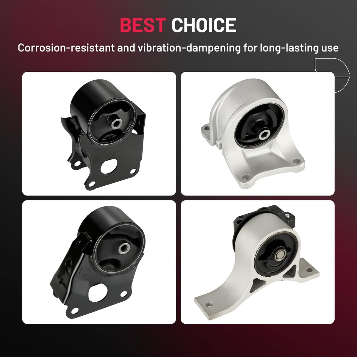 【Package Included】1x Front Motor Mount Part Number# A7340, 9167, EM9167,1x Front Right Motor Mount Part Number# A7342, 9190,EM9190,1x Rear Motor Mount Part Number# A7341, 9209, EM9209,1x Transmission Mount Part Number# A7343, 5817, EM5817
