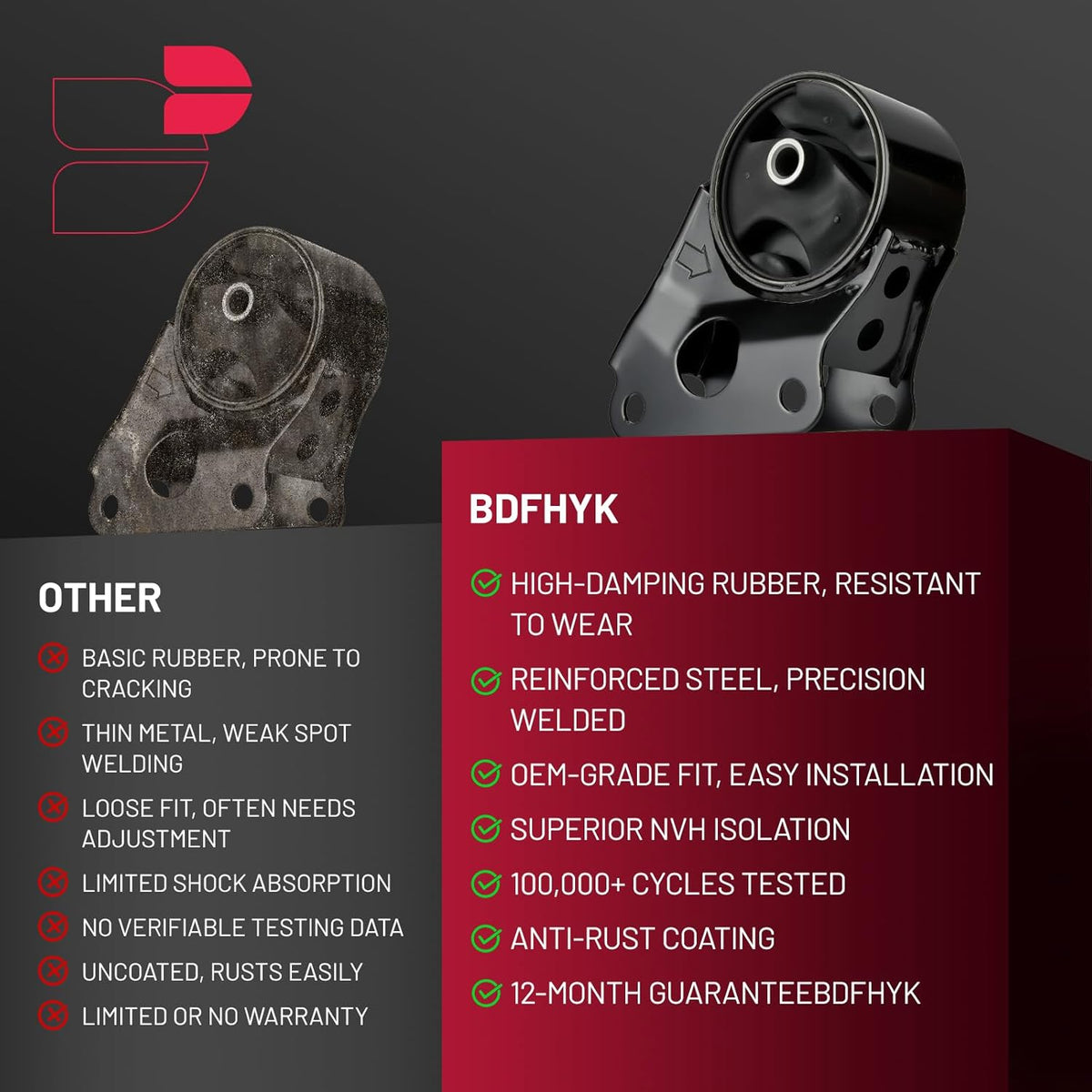 【Customer Service】BDFHYK Engine Motor Mount meets or exceeds OE standards.With a 365-day brand maintenance and 24-hour mail service,it delivers stable operation