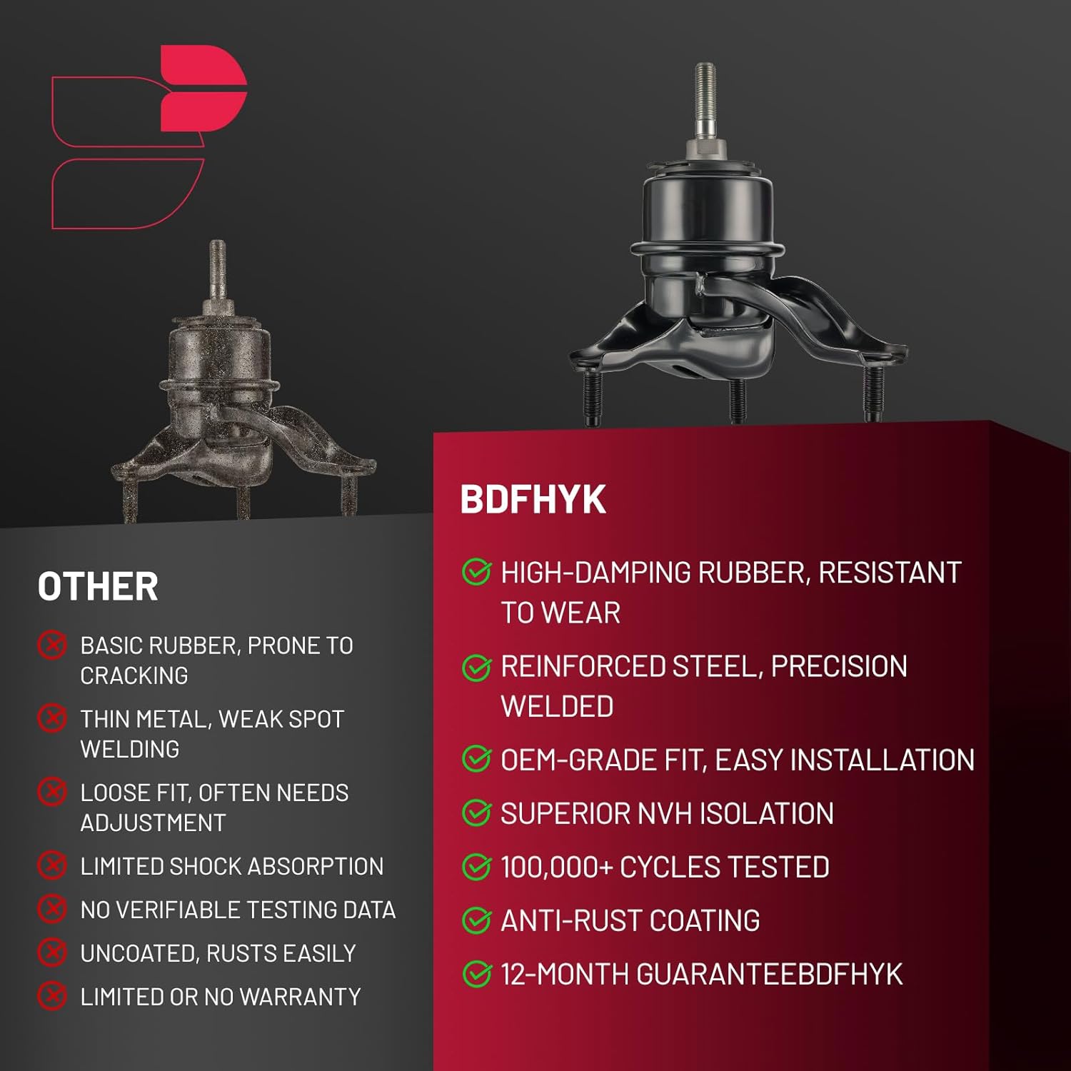 【Customer Service】BDFHYK Engine Motor Mount meets or exceeds OE standards.With a 365-day brand maintenance and 24-hour mail service,it delivers stable operation