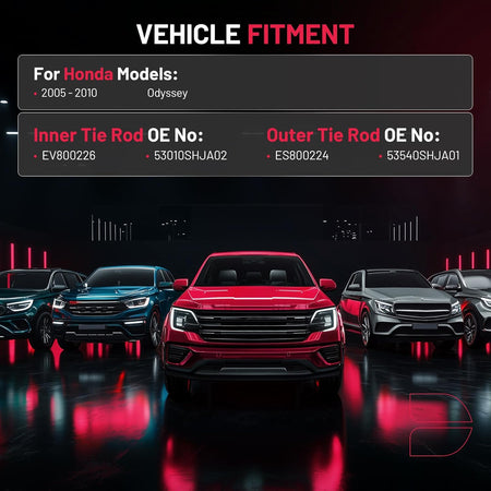 OE Standard Performance:Exquisite craftsmanship design,100% brand new high quality auto parts, OE grade durability, bring you ultimate comfortable driving experience.Inner Tie Rod OE No.:EV800226, 53010SHJA02. Outer Tie Rod OE No.:ES800224, 53540SHJA01.