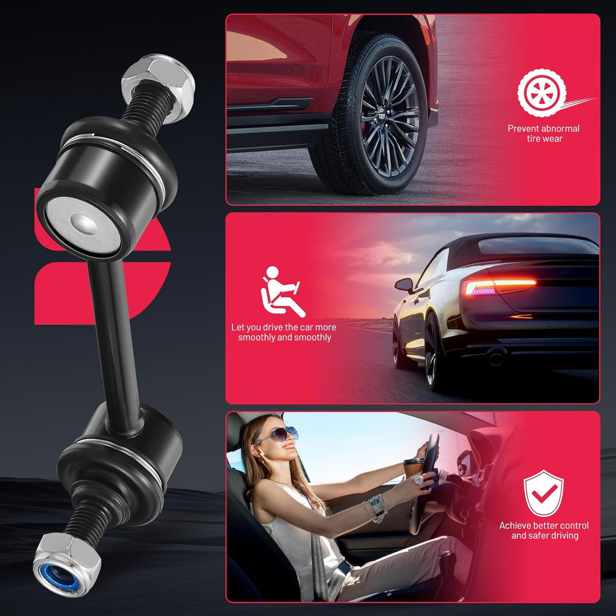 【High-quality】:Experience unparalleled durability with our stabilizer link, crafted from premium high-quality steel. The robust connecting rod enhances strength, while advanced metal bearings and innovative rubber preload ensure long-lasting performance. Choose reliability that stands the test of time!