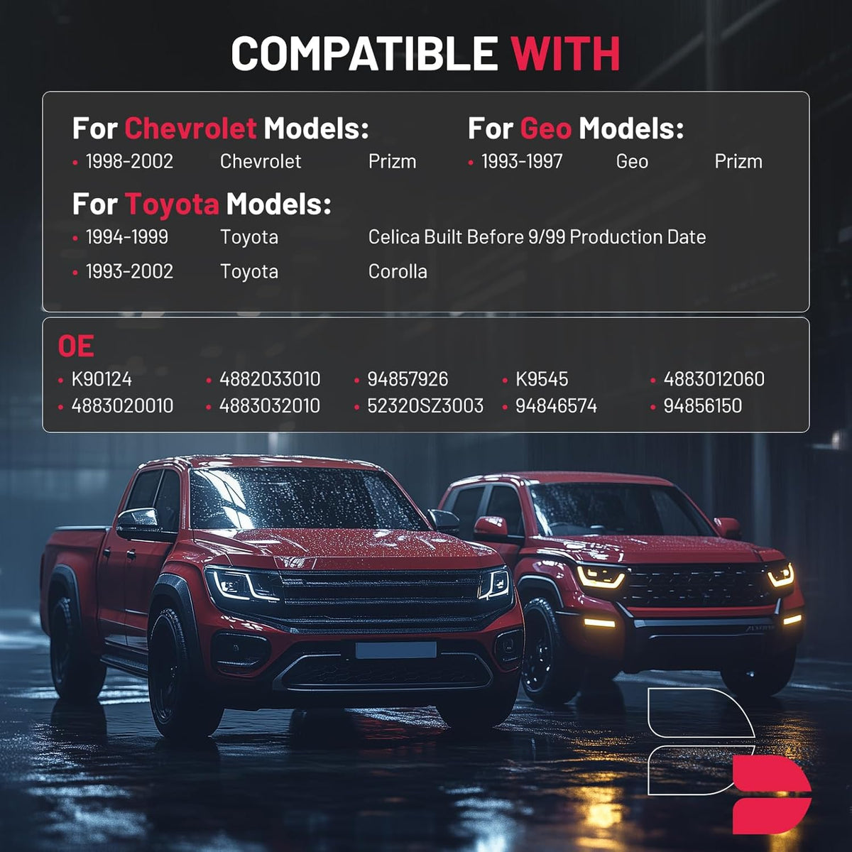 【Compatible Vehicles】Compatible with Chevrolet Prizm 1998-2002, Compatible with Geo Prizm 1993-1997, Compatible with Toyota Celica 1994-1999, Compatible with Toyota Corolla 1993-2002