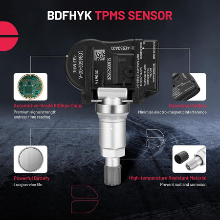 【Important Notice & Warranty】: BDFHYK offers a 1-year limited warranty and responsive customer support to ensure your satisfaction. 2. Before placing your order, please use Amazon's Part Finder tool to verify vehicle compatibility. 3. Use an OBDII scan tool to check sensor data—such as frequency, PSI, and battery status—before mounting to confirm proper functionality and compatibility