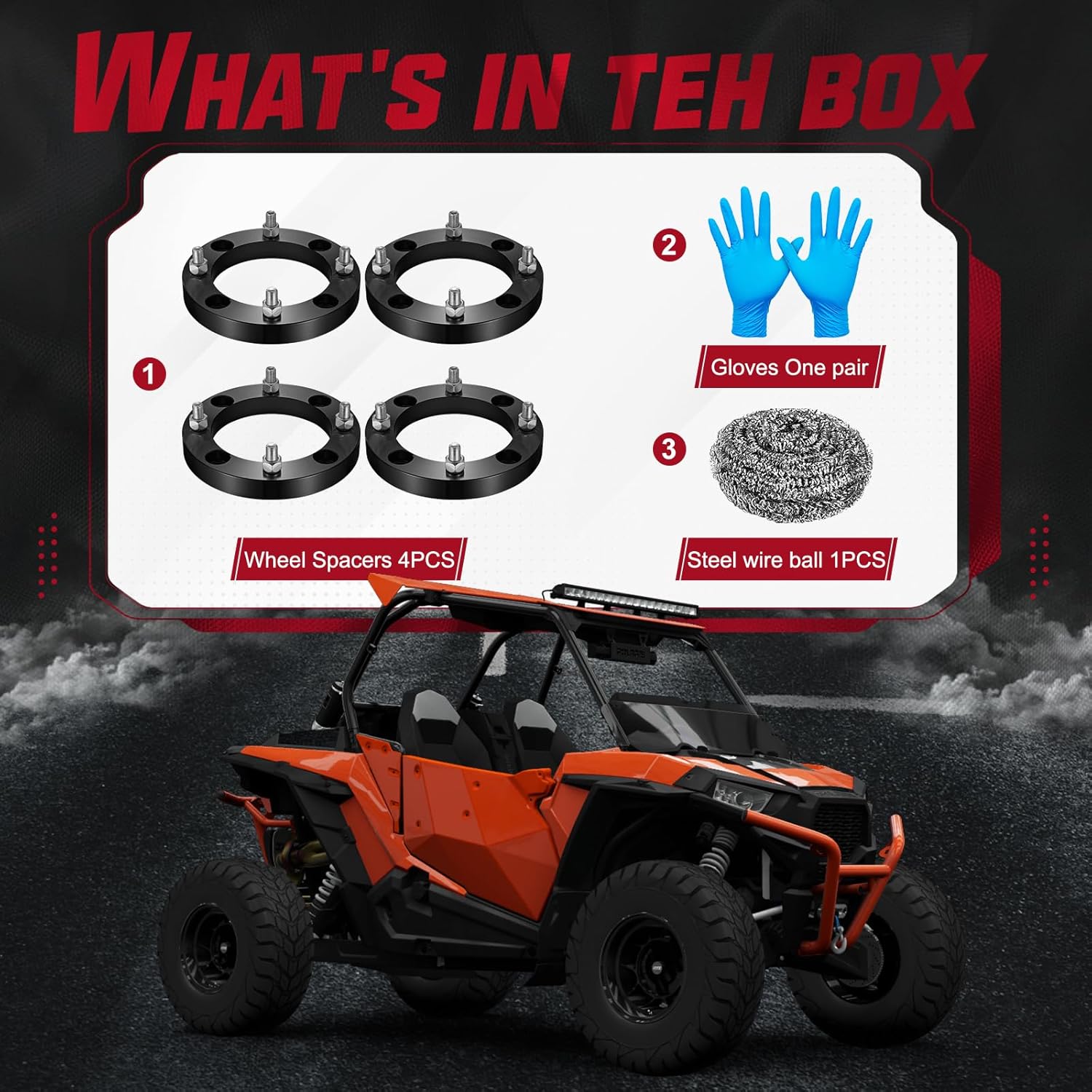 Basic Info: BDFHYK ATV wheel spacer Compatible with Polaris 2013-2014 Ranger 900, 2014-2015 Ranger Crew 900,2016 Ranger Crew 900-5, 2016 Ranger Crew 900-6, 2017 Ranger Crew XP 1000, 2016 Ranger Crew XP 570-6, 2017 Ranger Crew XP 900, 2016 Ranger Crew XP 900-5, 2016 Ranger Crew XP 900-6, 2017 Ranger XP 1000, 2013-2017 Ranger XP 900, 2014-2017 RZR 4 900,2015 RZR 4 XP 1000, 2014-2017 RZR 900, 2016-2017 RZR S 1000, 2015-2017 RZR S 900, 2014-2017 RZR XP 1000, 2014-2017 RZR XP 4 1000, 2013 RZR XP 900