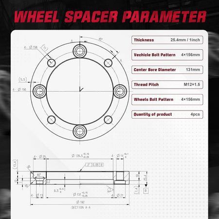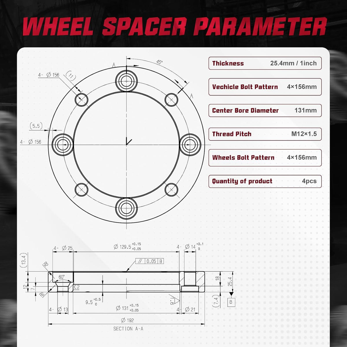 Product Specs: Set of 4 1 inch/25.4 mm Thickness, 4x101.6mm Wheel Bolt Pattern, 131mm Center Bore, M12x1.5 Thread Pitch (without lip hub). Protective gloves| Cleaning wire balls.please check the product parameter information carefully before purchase.12 months warranty and lifetime after-sales service are furnished after bought our products. Please choose a suitable one with confidence