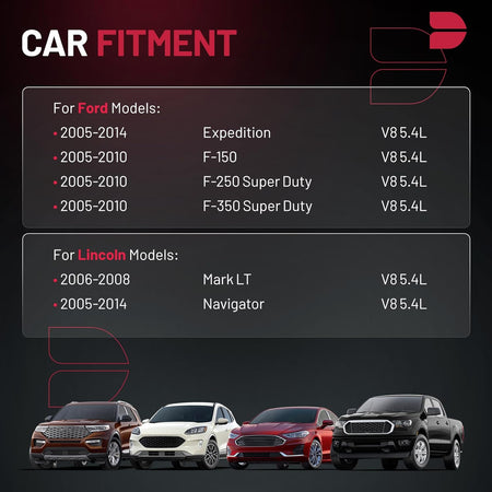 [Compatible Vehicles]: 5.4 trition Timing Chain Kit Compatible with Ford 2005-2014 Expedition, 2005-2010 F-150, 2005-2010 F-250 Super Duty, 2005-2010 F-350 Super Duty; Compatible with Lincoln 2006-2008 Mark LT, 2005-2014 Navigator. Engine fitment: 5.4L V8