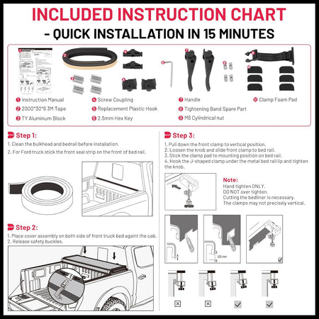 EASY INSTALLATION WITHOUT DRILLING: Truck tonneau covers easy installation and removal.Our car trunk covers install without drilling and come with all necessary instructions and mounting hardware Quick 15 minute installation