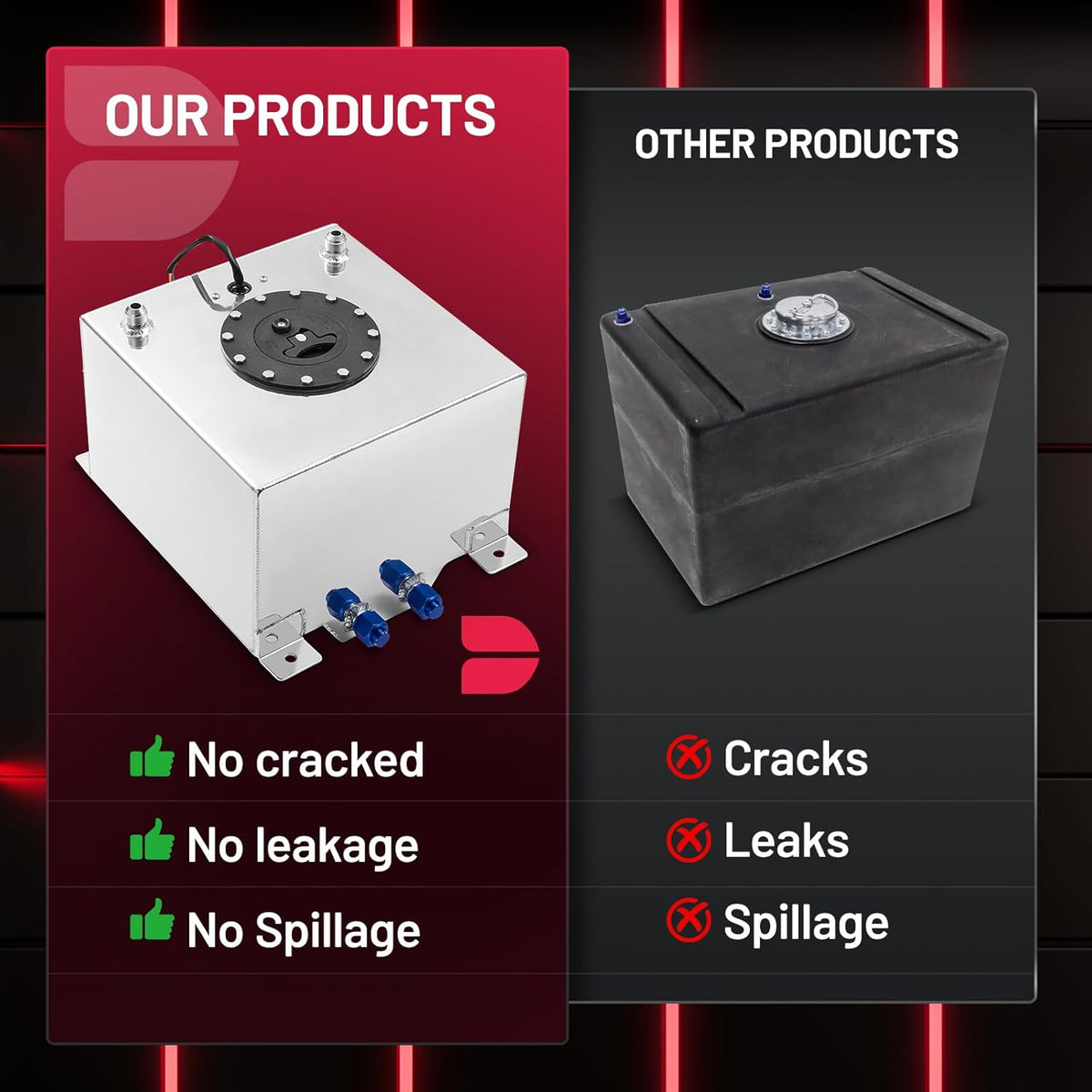 Application: Drift Fuel Cell increase the fuel storage capacity of your vehicle and are compatible with fuel, diesel, alcohol, methanol, water, and ethanol. (Note: not compatible with alcohol, methanol, ethanol if used with CPE fuel line)