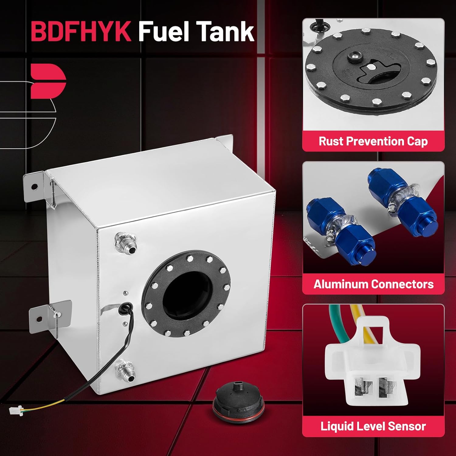 Package includes: 1 x Aluminum 5 Gallon Fuel Cell with built-in level sensor (3-90 ohm) and splash-proof foam. This fuel tank is universal compatible with hot rods/street racing/track cars/trucks/SUVs etc.